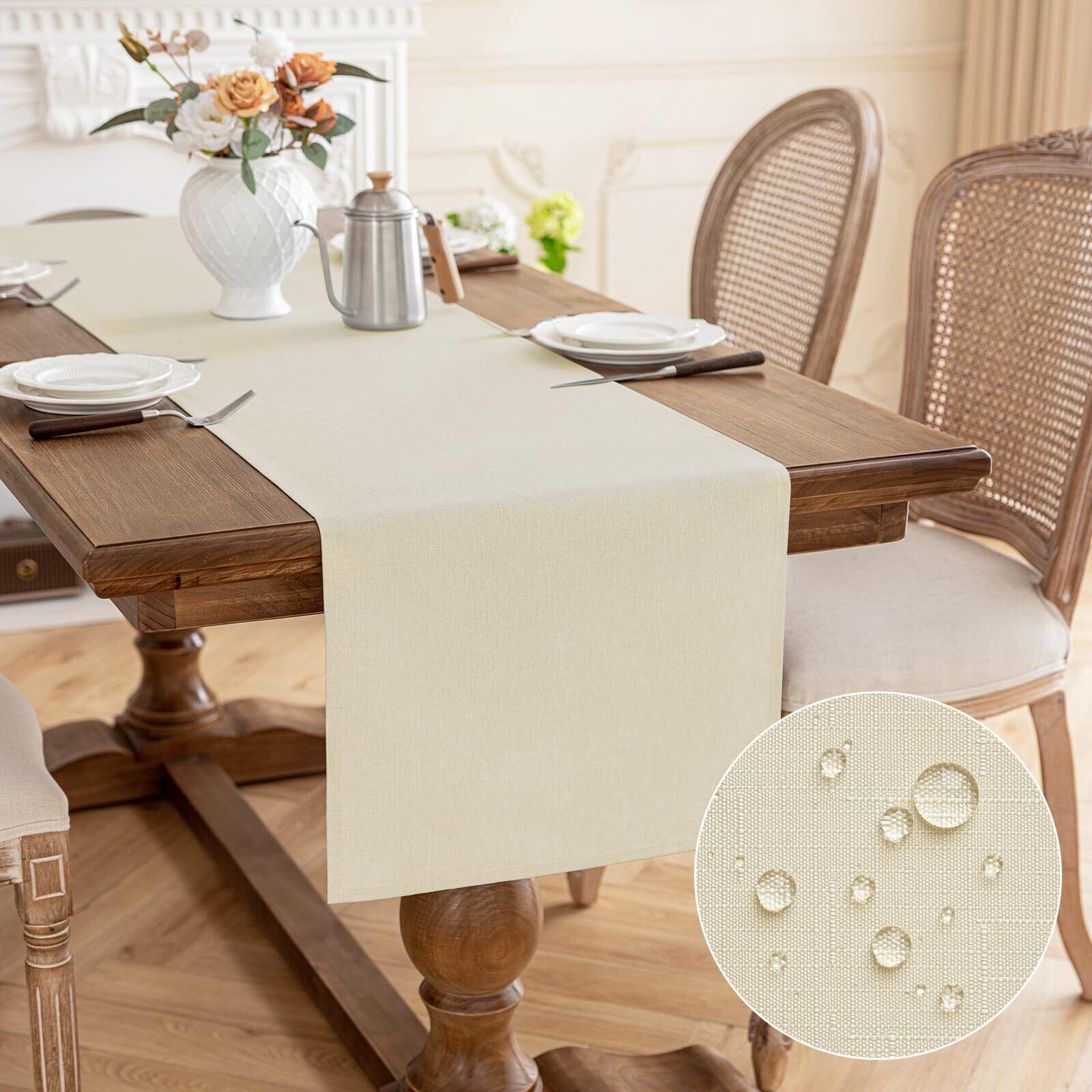 AooHome テーブルランナー 30x140cm リネン風デザイン 無地 和風 洋風 北欧 クロス テーブルクロス テーブルセンター ブリッジランナー 洗えるポリエステル製・撥水|防傷加工 ベージュ