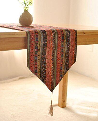 Aothpher 和風 テーブルランナー 棉麻 赤 30*180cm モダン マルチカラーストライプ アジアン 花柄 タッセル付き ベッドランナー クラシック おしゃれ リビング 北欧風 インテリア 雑貨 寝室 刺繍 お手入れ簡単