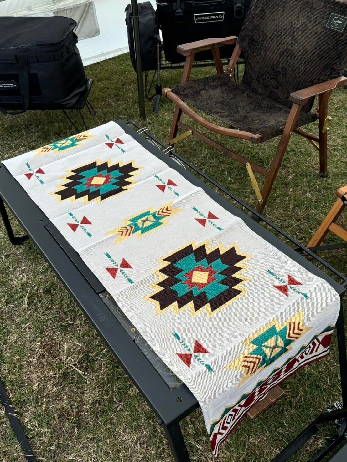 【数量限定】テーブルランナー キリム柄 オルテガ柄 エスニック キャンプ アウトドア ピクニック プレイスマット おしゃれ 35X120cm,