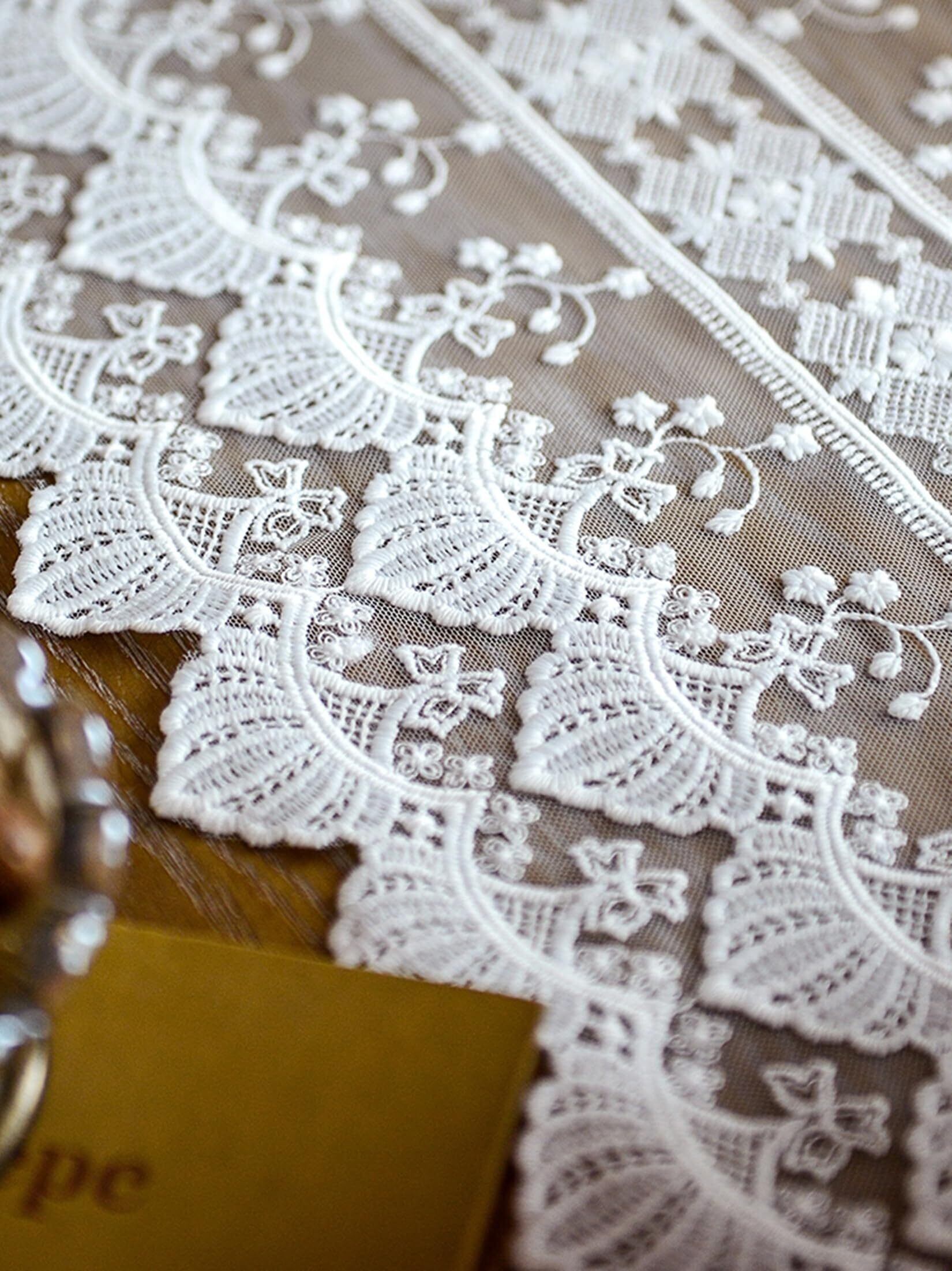 繊細な刺繍レースがお洒落。上品な透け感があるので、一瞬で気品のある空間に変えてくれるレースです。