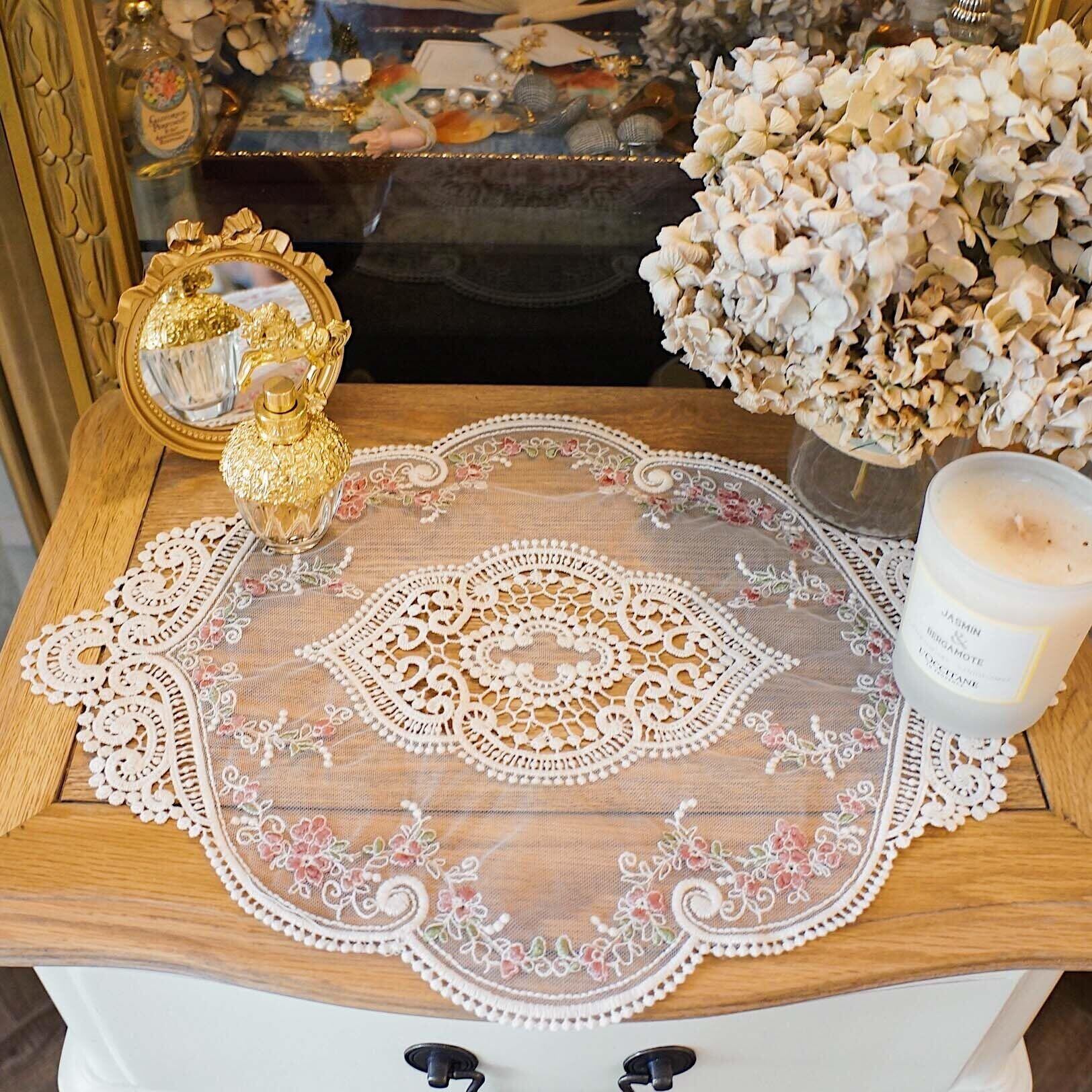 テーブルランナー レース 刺繍入り 花柄 白 北欧風 センタークロス アンティーク調 おしゃれ コースター 花瓶敷き モダン (コースタータイプC)