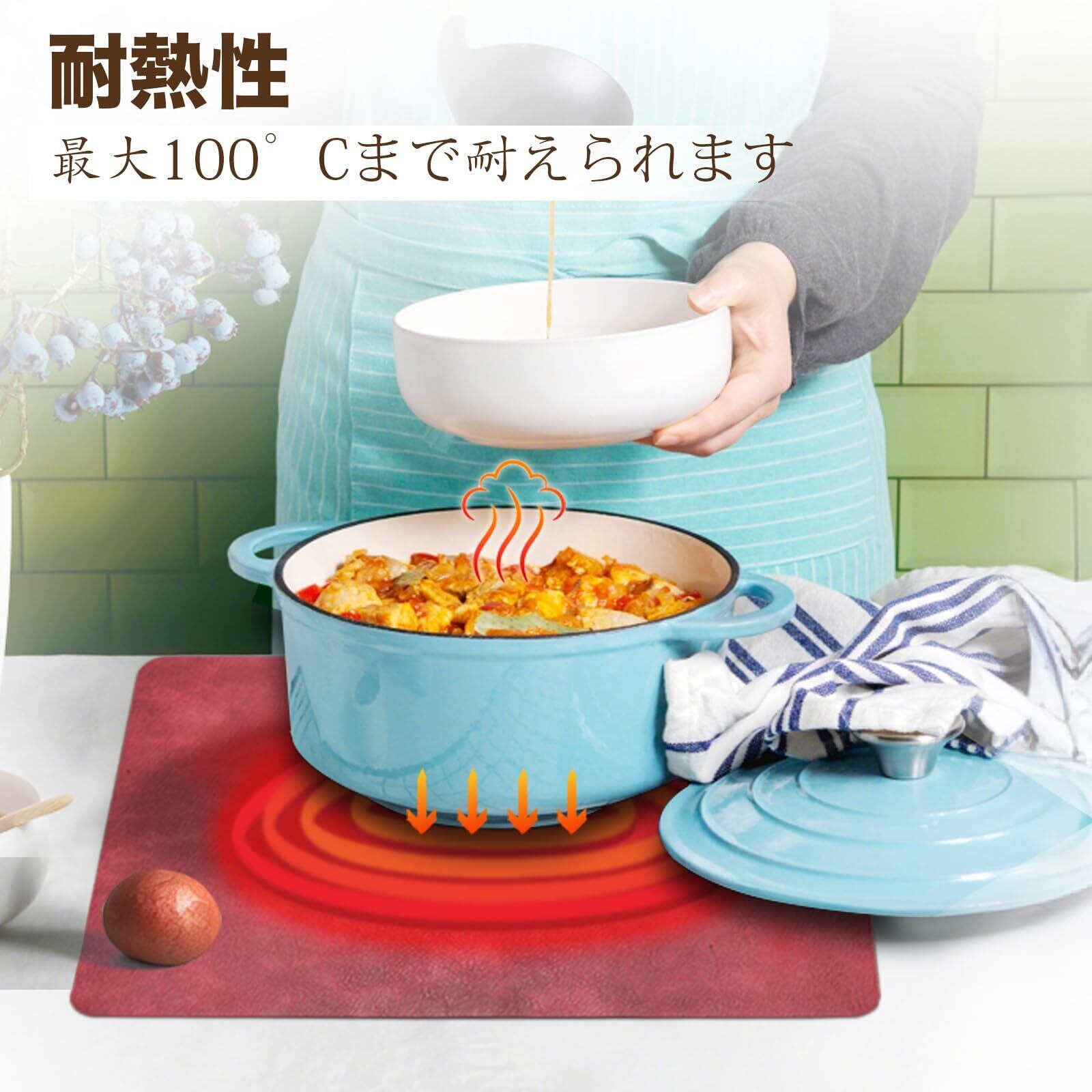 【素材】高品質のPUレザー、色あせ防止、丈夫で耐久性があり、丸くならず、長期間使用できます。 無毒、安全で色褪せにくい。耐熱温度は100°Cに達して、テーブルを傷付けなくしっかり保護できます。