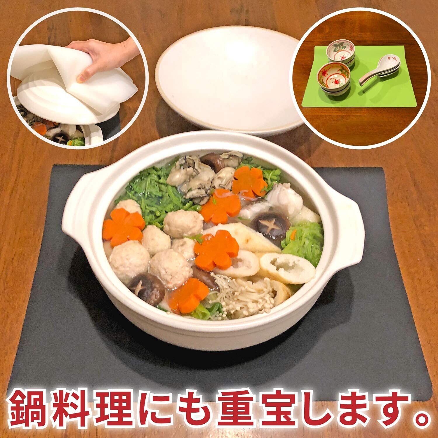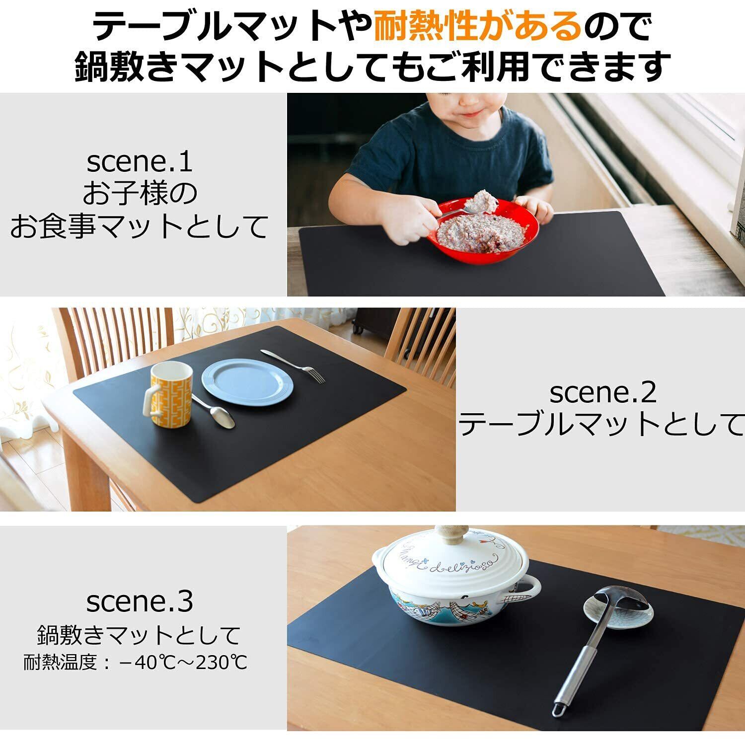 ランチョンマット、キッチンマット、調理器具や食器の滑り止め防止マット、鍋敷き・鍋蓋つかみに。他にもペット用のマット、ハンダ付け、模型作成、クラフトワーク、ジェルネイル、その他加工作業の下敷き、床や階段のキズ防止や滑り止め等、キズ防止 汚れ防止 滑り止め 衝撃吸収 耐熱 耐冷用の保護マットとして、広範囲な用途でのご使用が可能です。