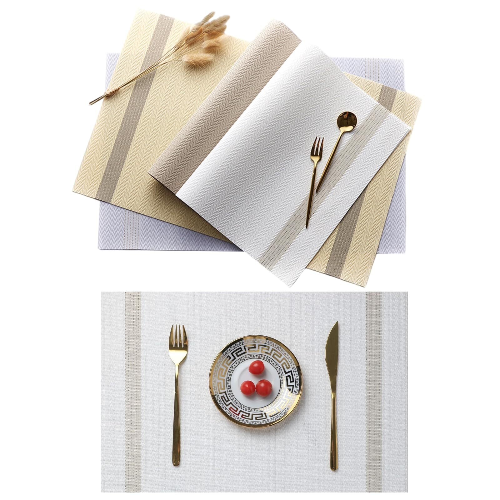 GreenGee ランチョンマット 4枚セット リバーシブル 30×45㎝ 四角 PVC製 テーブルマット 食卓飾り 防汚 断熱 水洗いOK お手入れ 簡単 滑り止め 摩擦 耐える 華やか 雰囲気 プレースマット 家庭用 レストラン