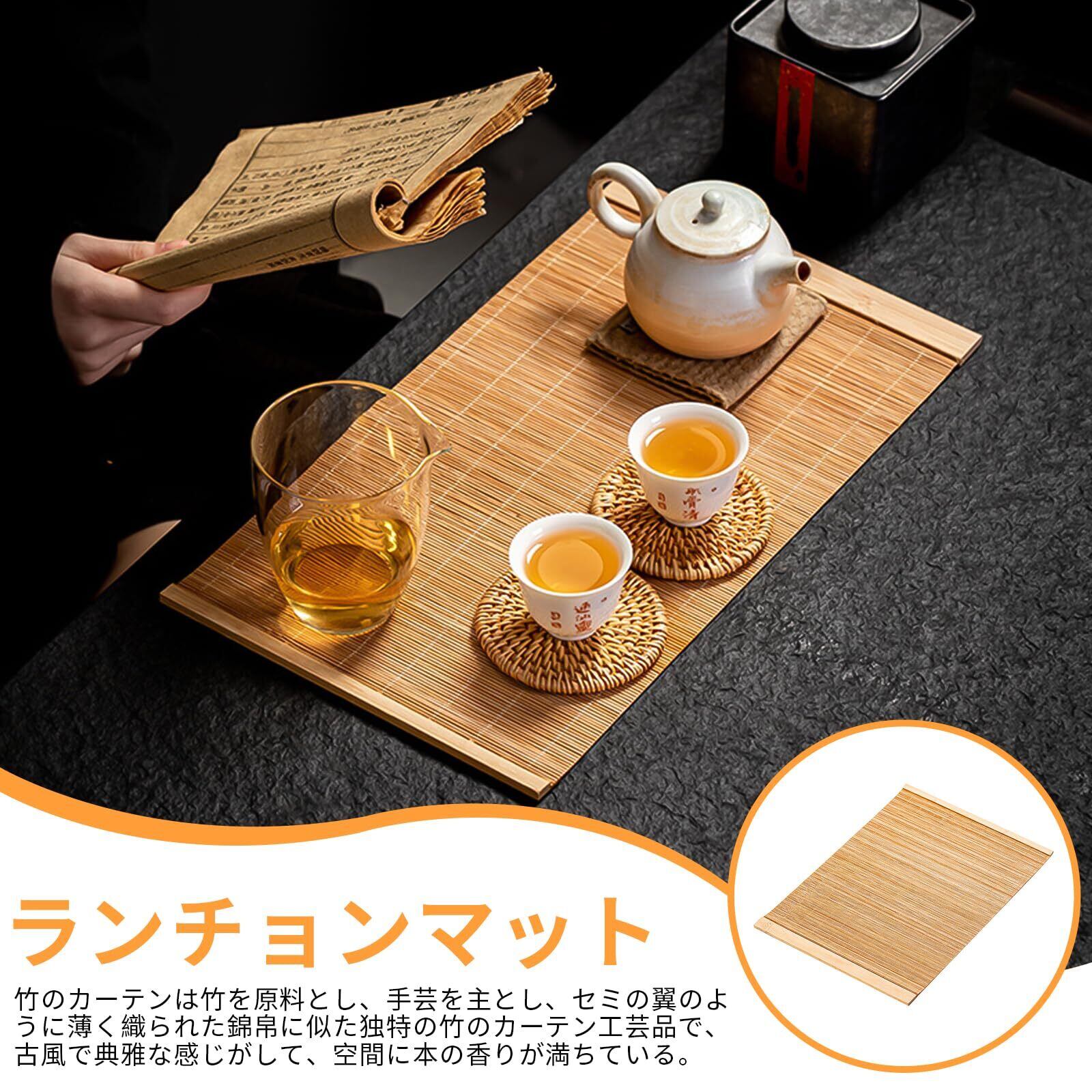 ランチョンマット プレースマット (2枚セット) 竹 お茶 マット 30×20cm 断熱 滑り止め 無地 和風 キッチン 家庭用 レストラン用 茶器 茶道用品