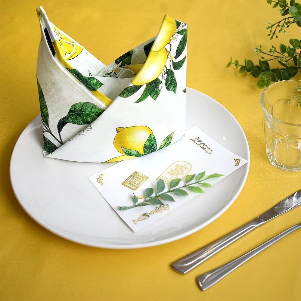 また、50センチ四方のサイズは、ご家庭だけでなく、レストランなどでサービスナプキン(トーション)としてご使用いただくにもちょうどよい大きさです。