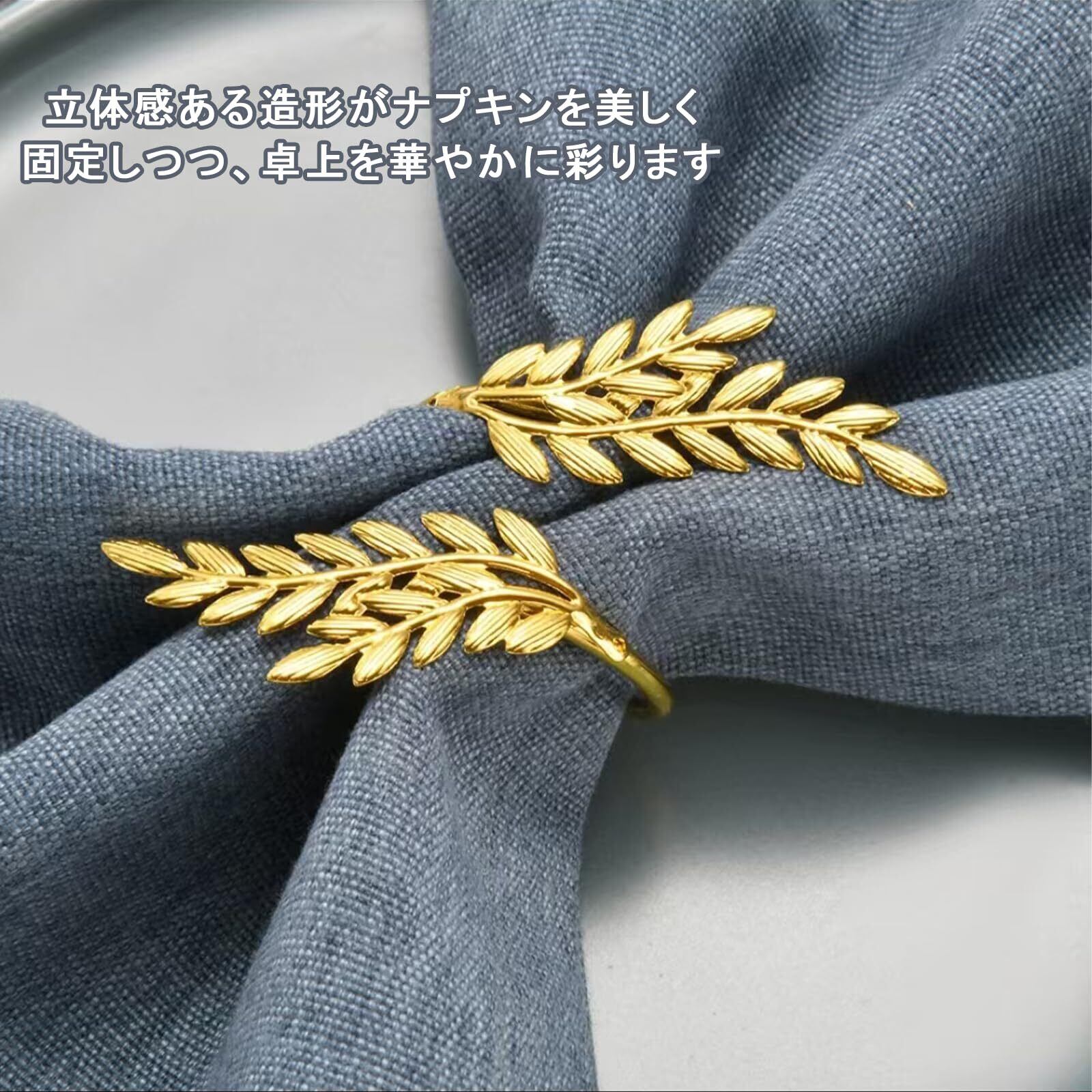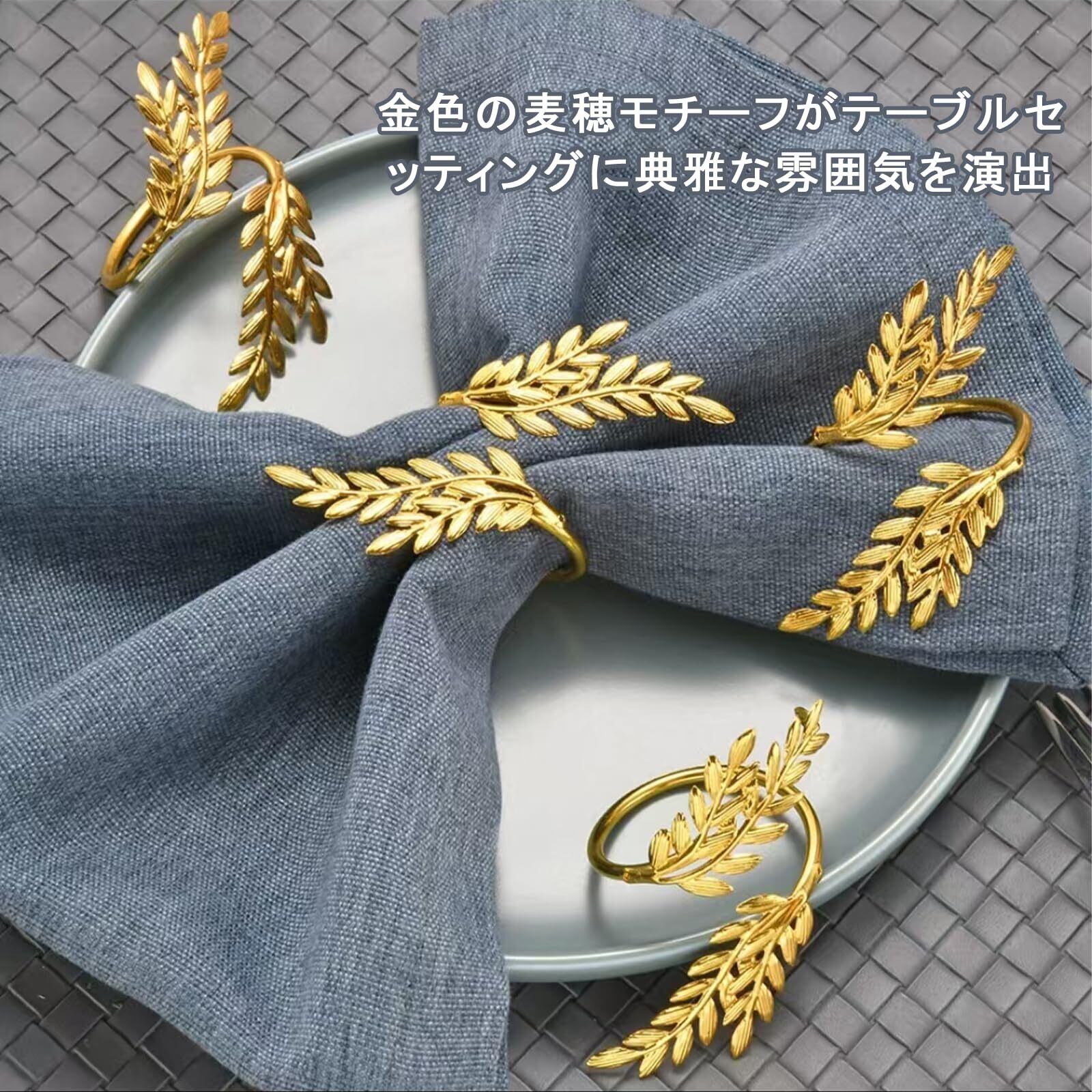 モダンなデザイン:黄金色の麦穂モチーフが優雅な雰囲気を演出。立体感ある造形がナプキンを美しく固定しつつ、卓上を華やかに彩ります。