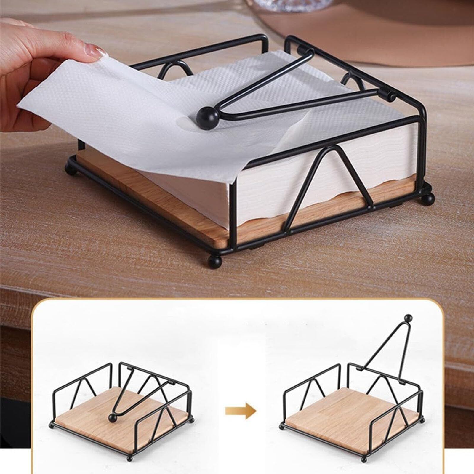【高品質素材】ナプキンホルダーは金属、鉄、木材で作られており、精巧な職人技で作られており、日常の傷に強く、耐久性があり、ダイニングテーブルにユニークな装飾を施します。