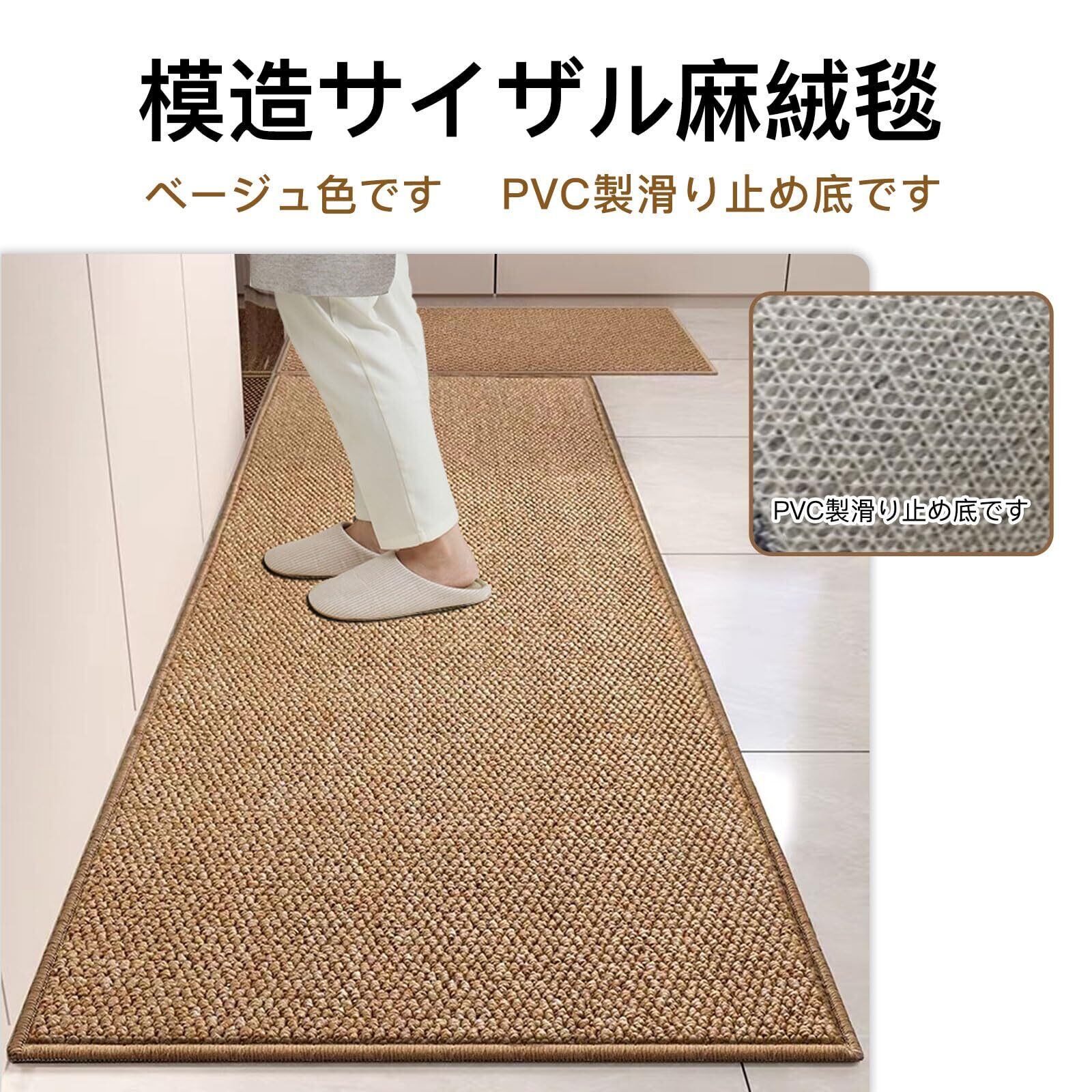 【在庫処分】模造サイザル麻絨毯 キッチンマット 超吸水 洗える 滑り止め 屋外玄関マットウ 衝撃緩和 おしゃれ 玄関マット 足ふきマット ウェルカムマット 猫用スクラッチボードフロアマット (ナチュラル/ベージュ, 44*120)