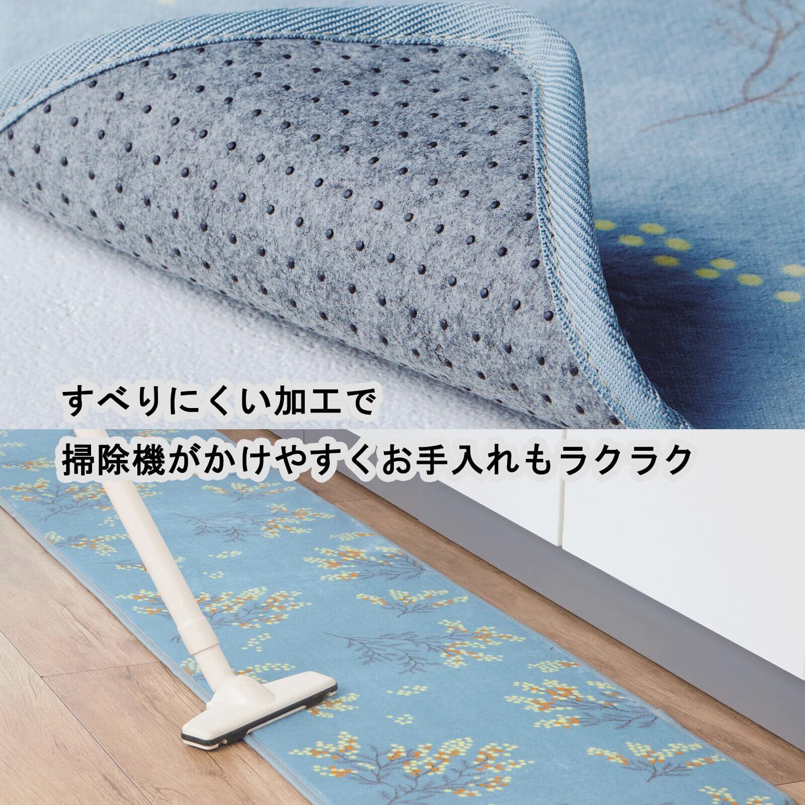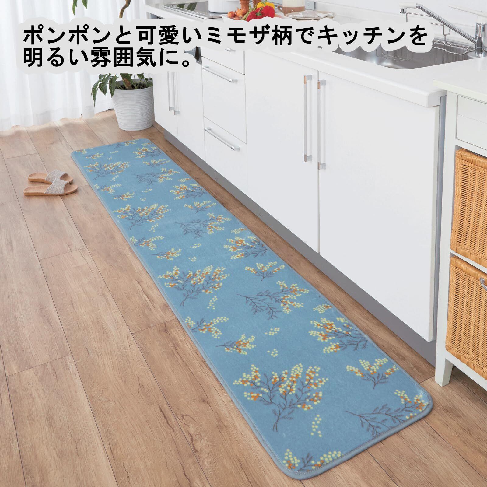 キッチンマット さらふわ ロングマット ミモザ ブルー 45×240㎝ 台所 フローリング 長い すべり止め 新生活 北欧 ふわふわ さらさら おしゃれ かわいい 92141900