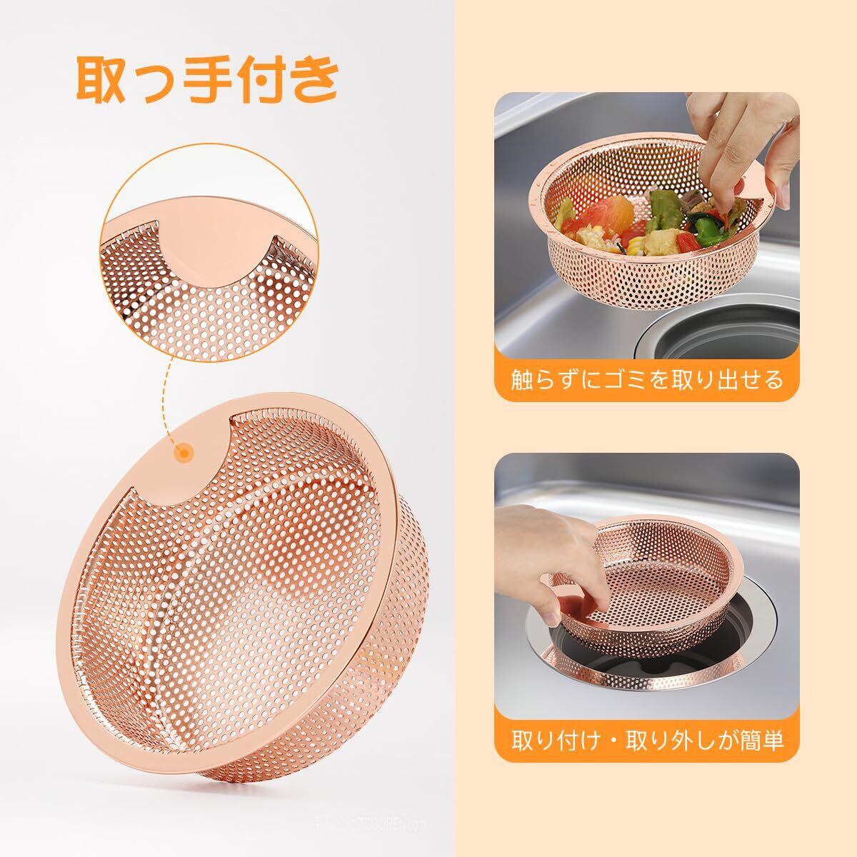 【取っ手付き】排水口 ゴミ受けはごみに触れずに取り出せる取っ手が付いて、取り付けと取り外しが簡単で、お手入れも簡単です。