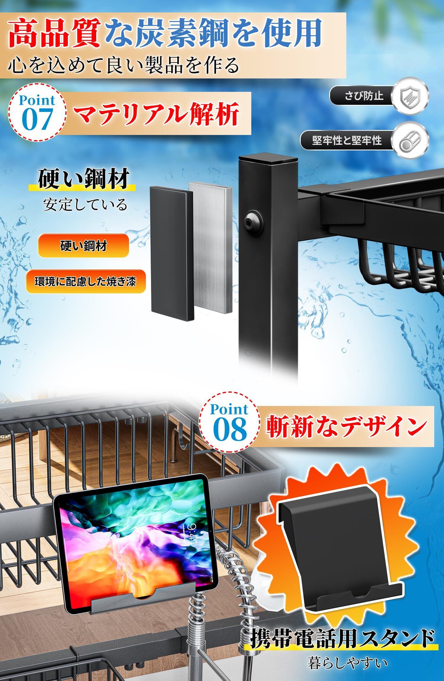 【人気商品】ADBIU 2025年版 シンク上水切りラック (拡張可能な寸法) スナップオンデザイン 2段 大型キッチンディッシュラック ステンレススチール カウンターの整理と収納