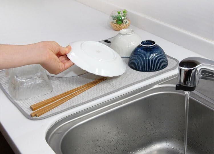 吸水力と速乾性に優れ、絞るだけですぐに吸水力が戻る水切りマット