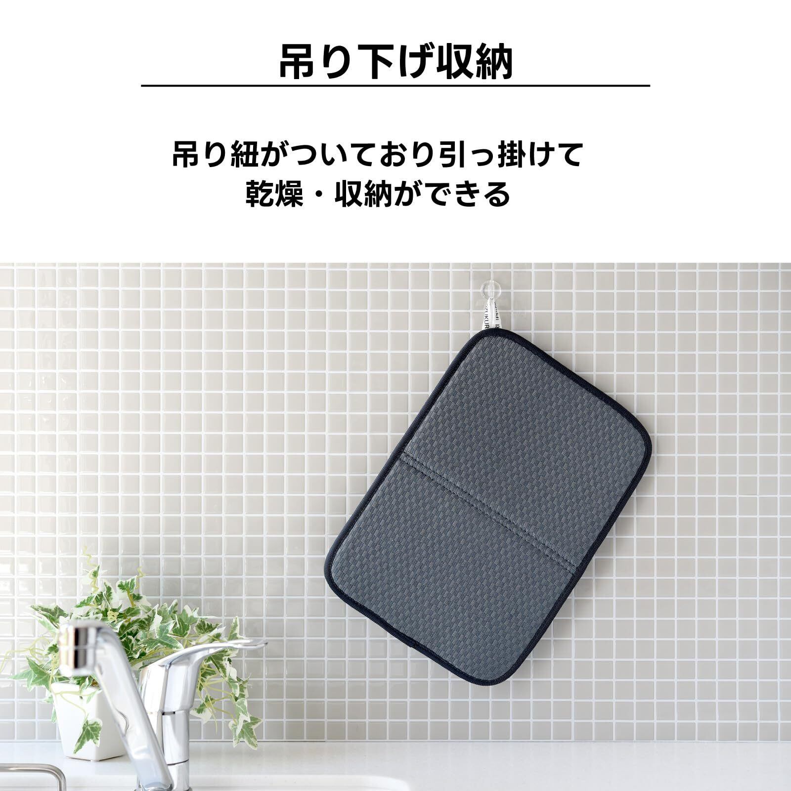 厚手で食器類の水切りだけでなく水ハネで濡れたキッチン作業台の拭き取りにも吸水力を発揮する。揮発性に優れ乾きが早い