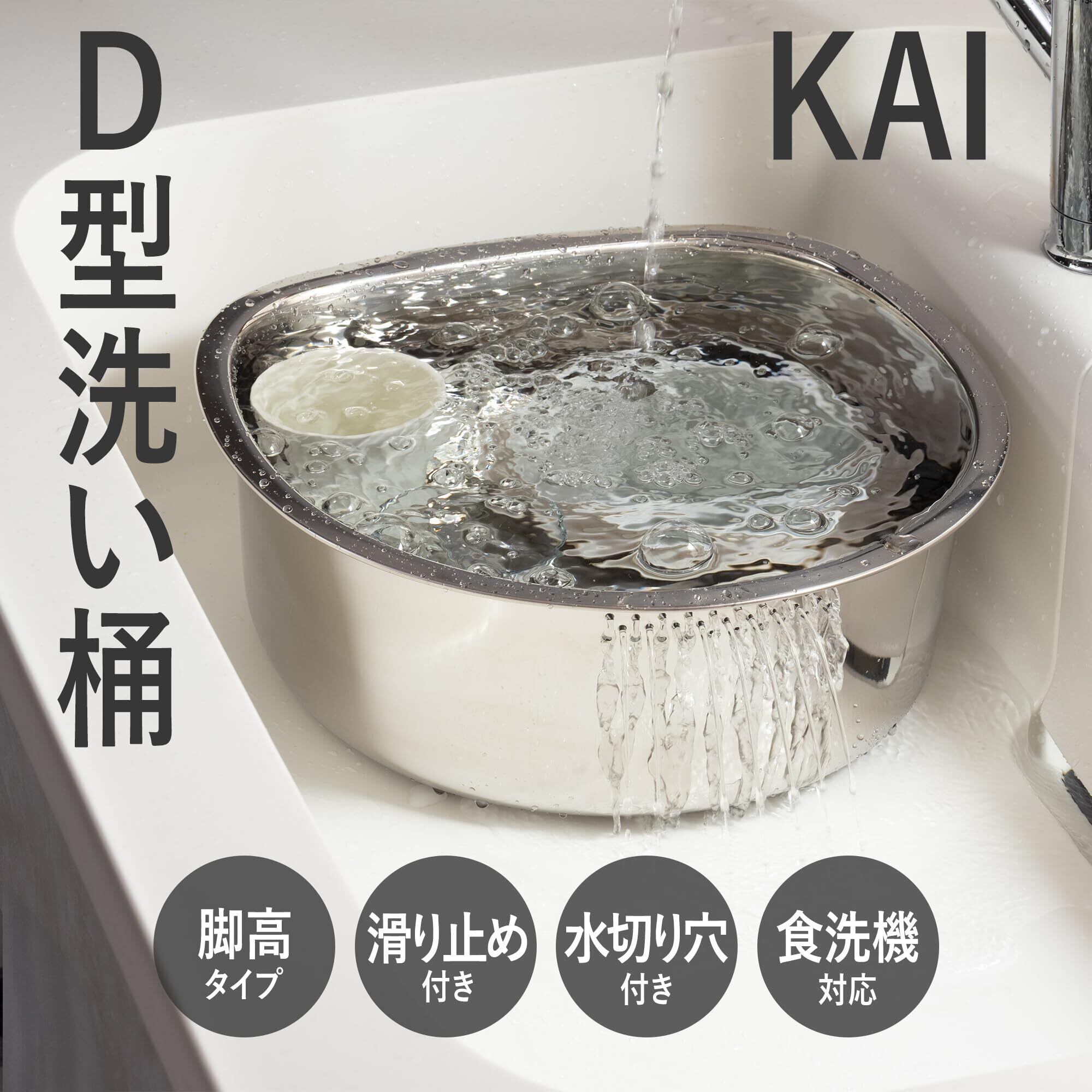 【新着商品】貝印 KAI 洗い桶 D型 脚高ゴム付 DZ1141 シルバー