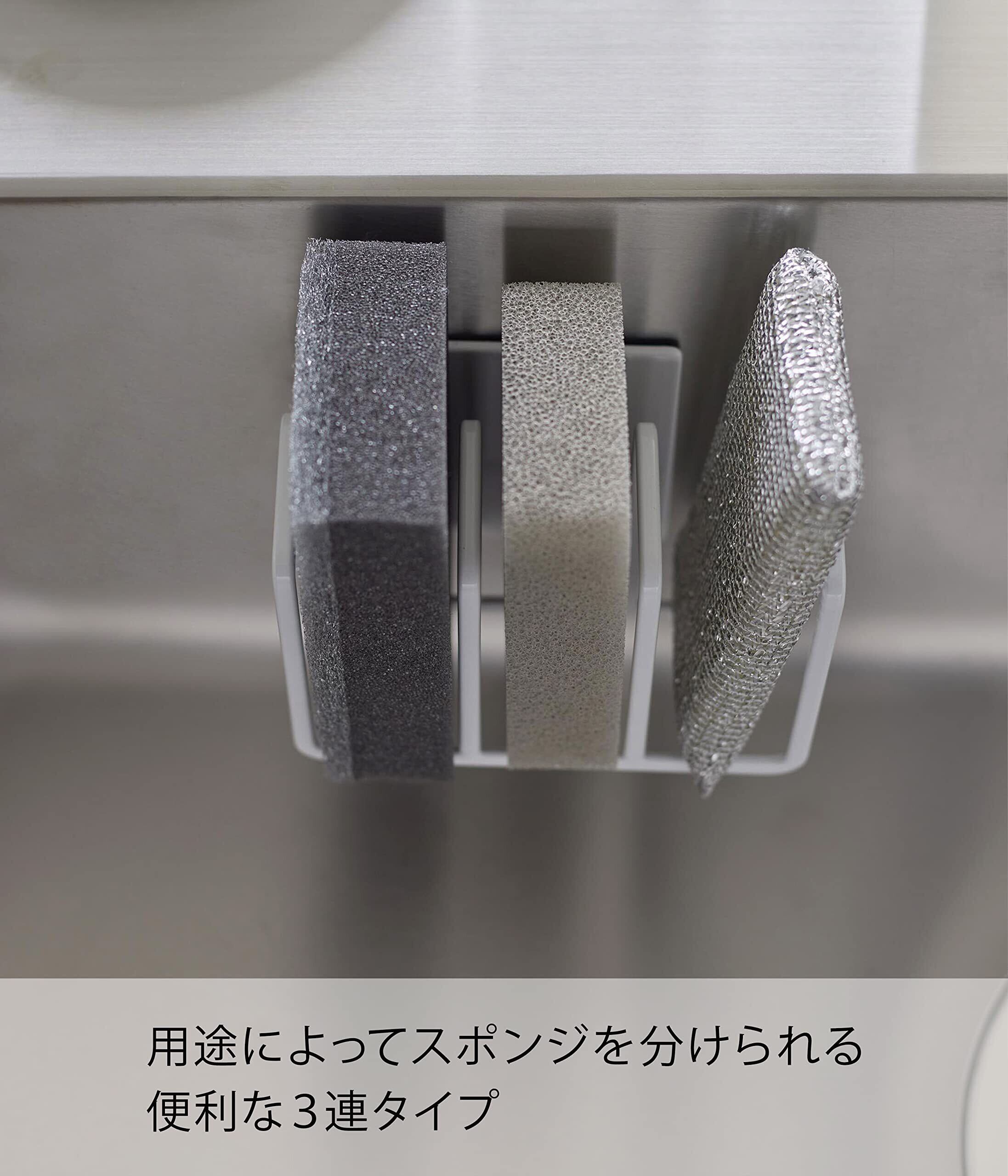 【2022最新】山崎実業(Yamazaki) マグネット スポンジホルダー 3連 ホワイト 約W12.5×D7×H8.5cm タワー tower スポンジ置き お手入れ簡単 3282