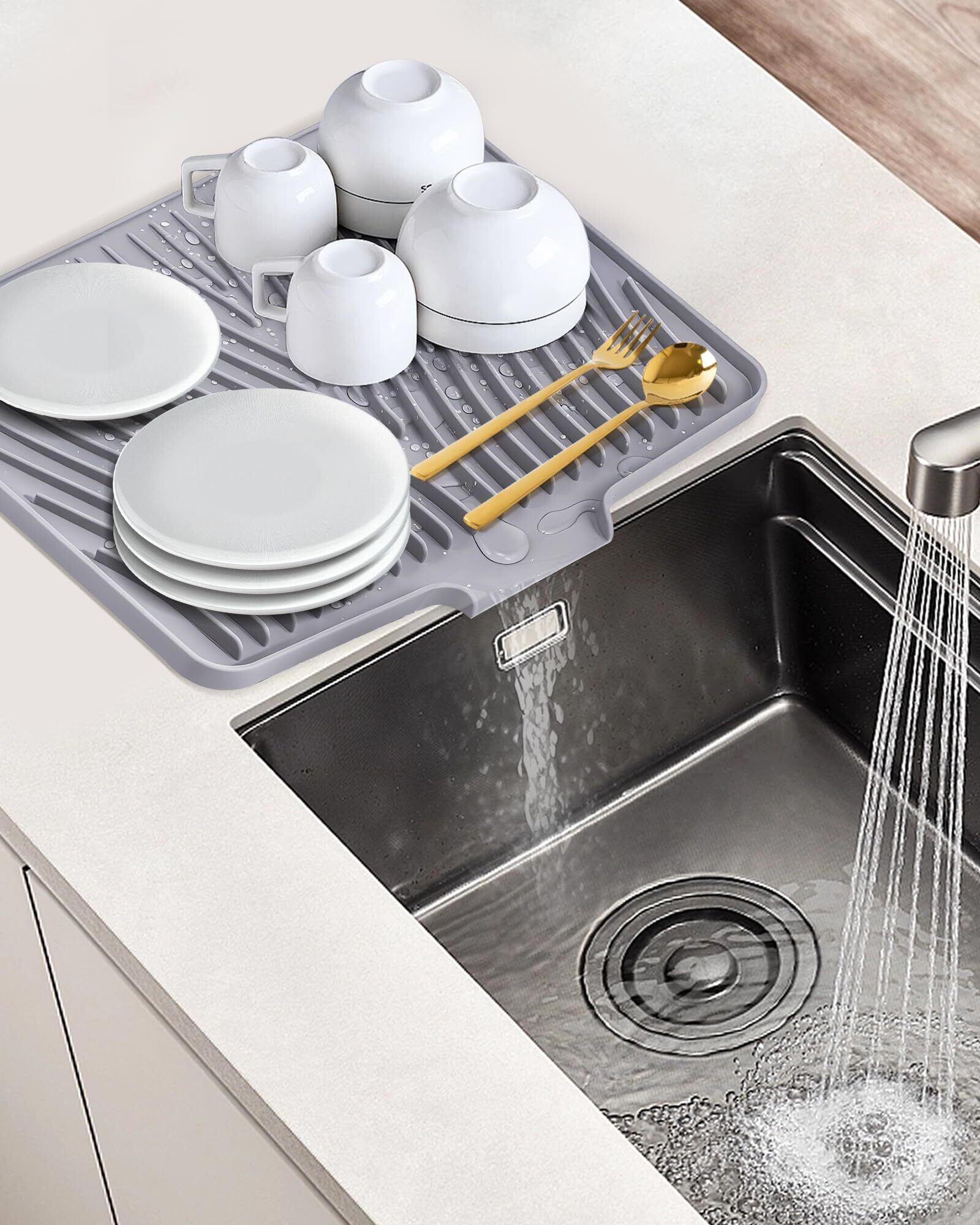 多機能:この多機能水切りマットは、キッチンのカウンタートップやシンクの横で食器を乾かすのに最適で、フォンデュマット、グリルマット、コーヒーメーカーマット、ペットの餌やりマット、滑り止めまな板マットとしても使用できます。 キッチン、レストラン、屋外イベントなど、さまざまな環境でのニーズにお応えします。