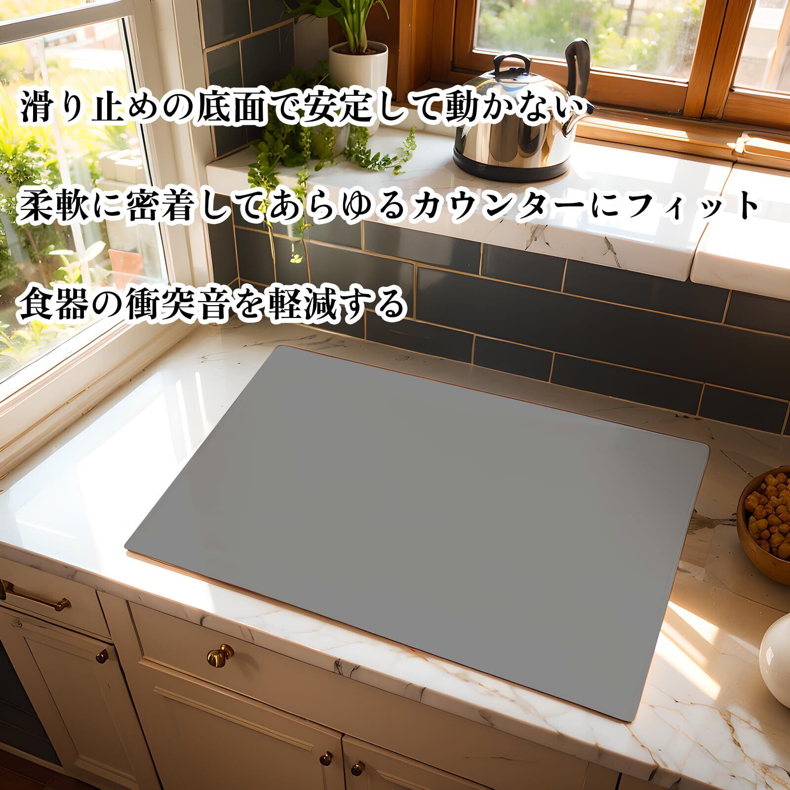 【高品質シリコンマットキッチン】表面が滑らかで摩擦力が強く、平らに広げても捲れず、優れた柔軟性で折りたたんで収納でき、スペースを取らず、変形や破れにくいです。長期使用しても変形しない耐久性に優れ、必要な形にカットすることも可能です。