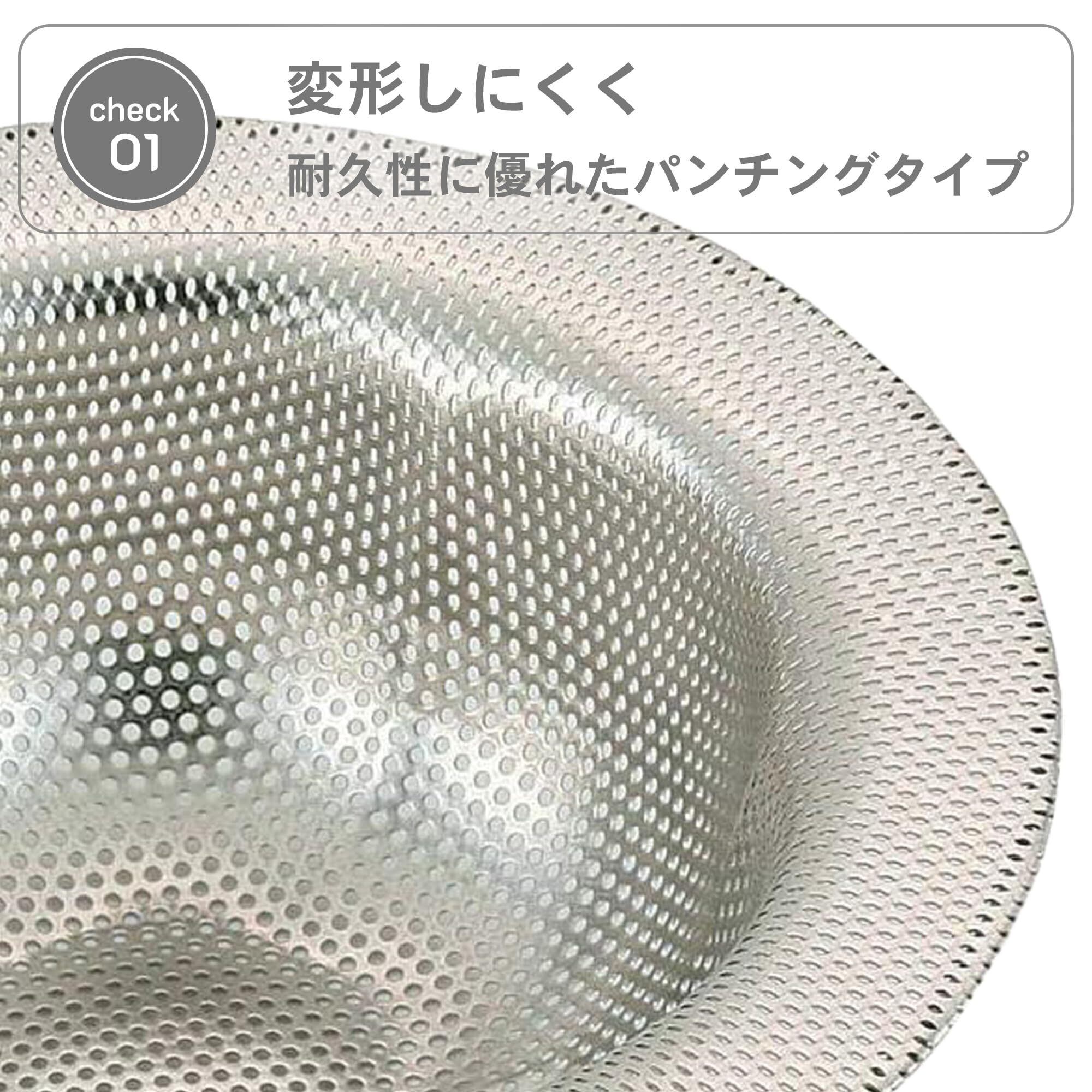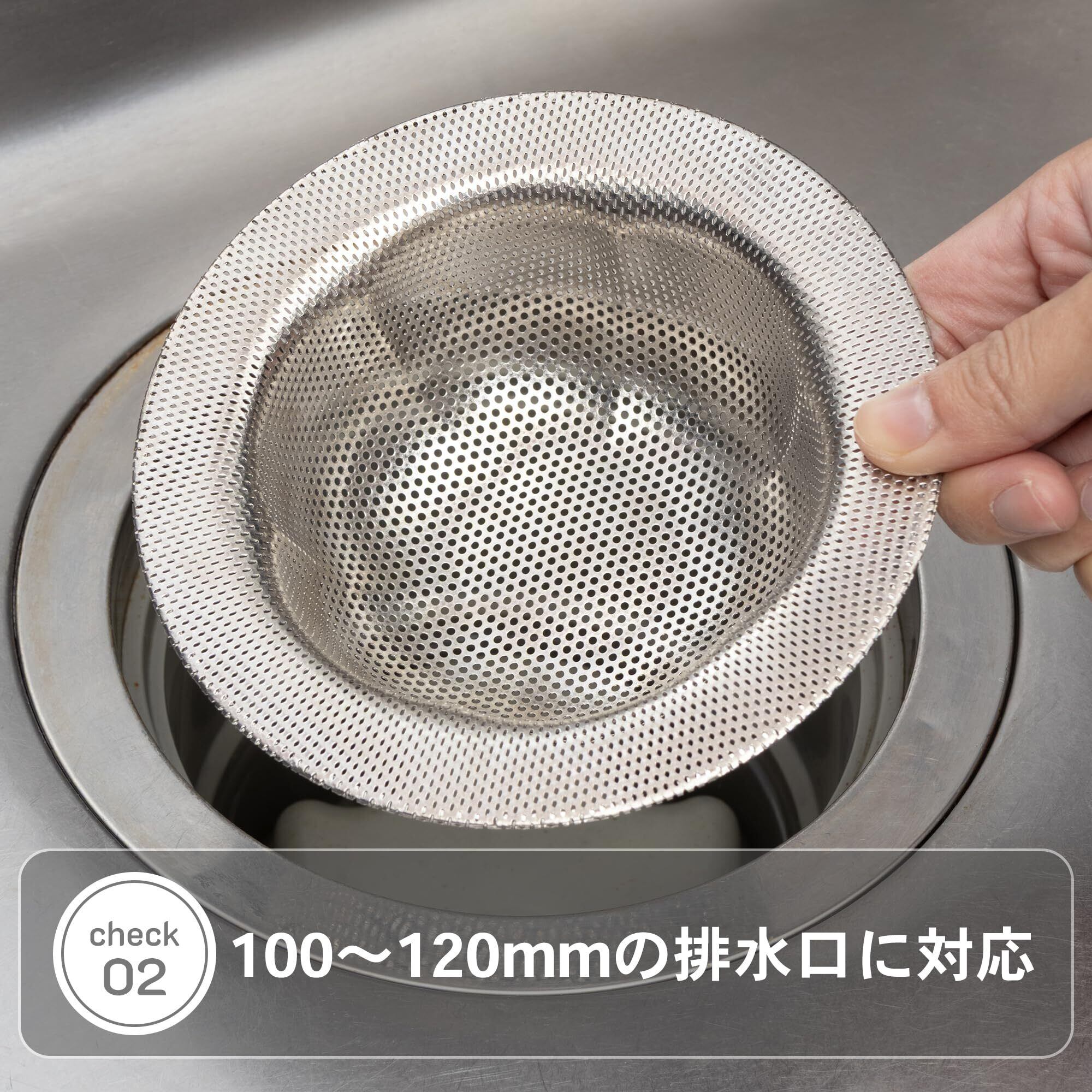 サビにくく、お手入れ簡単なステンレス製です。変形しにくく耐久性に優れたパンチングタイプ。100〜120mmの排水口に対応。