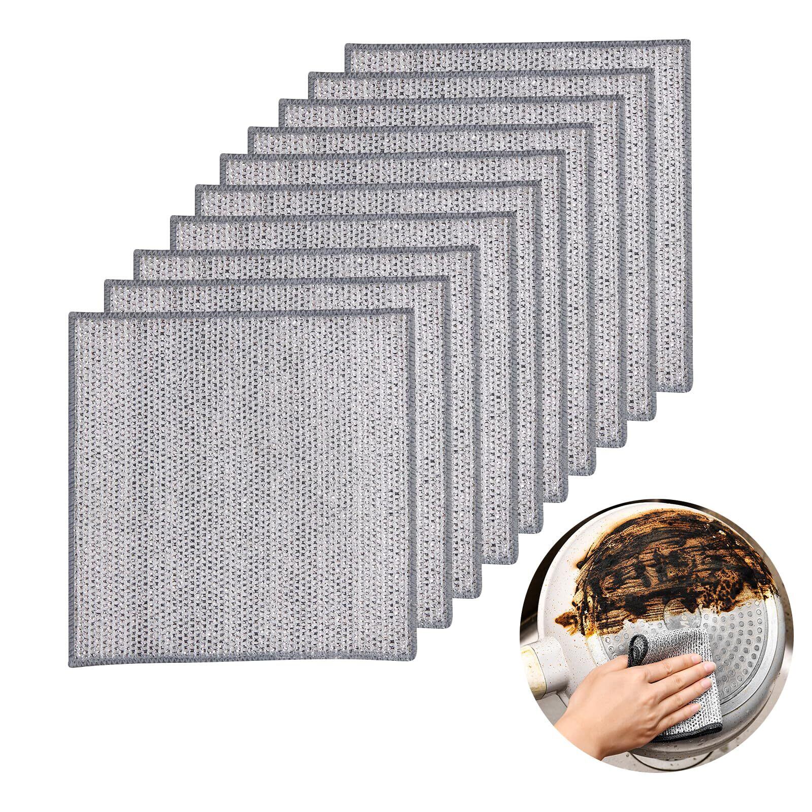aninako 食器洗い ふきん 金属ワイヤーふきん 10枚 タオル ワイヤー食器洗いタオル 食器用雑巾 傷を着けずに 耐久性 ボトル洗浄 食器洗い 食器拭き 多目的 家庭用 業務用 (単層)
