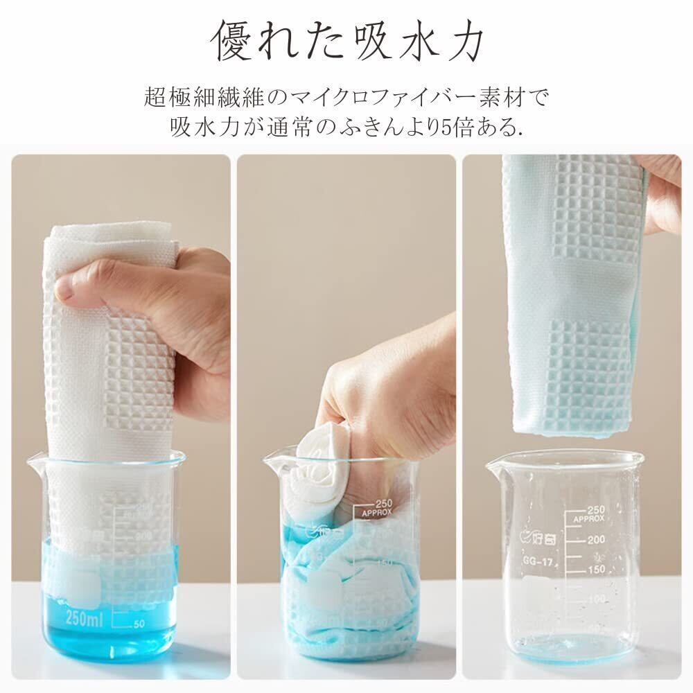 優れた吸水力 超極細繊維のマイクロファイバー素材で吸水力が通常のふきんより5倍あります。