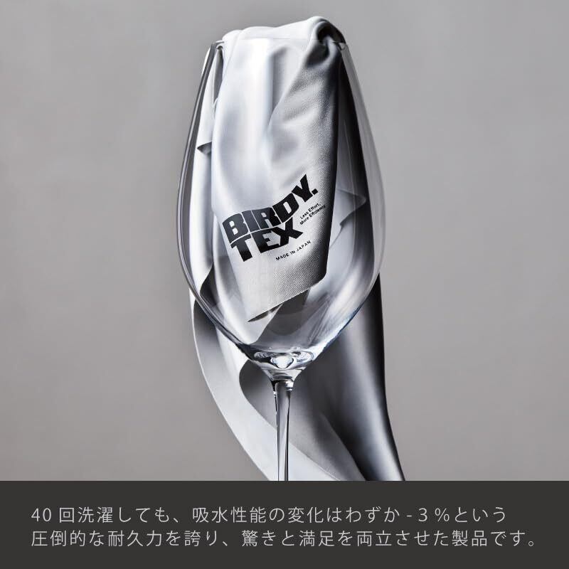 【新着商品】BIRDY.TEX グラスタオル クールグレー M(36×67cm) ミニグラスタオル(試供品)付き 水垢手垢をひと拭きで美しく 吸水性 速乾性能 時間短縮 耐久性 マイクロファイバー 毛羽立ちゼロ ワイングラス拭き グラス拭き