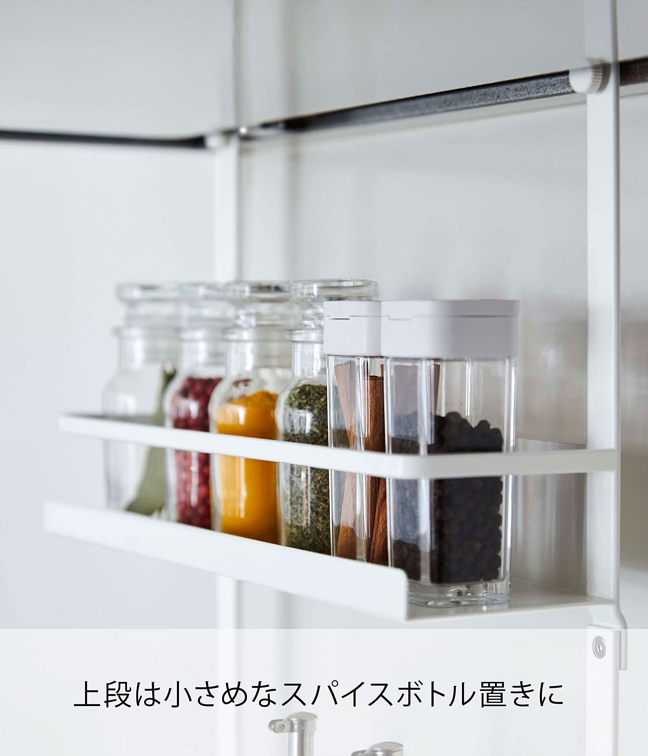 山崎実業(Yamazaki) レンジフード調味料ラック 3段 ホワイト 約W27.5XD14XH57cm プレート 大容量 シリコンキャップ付き 4838