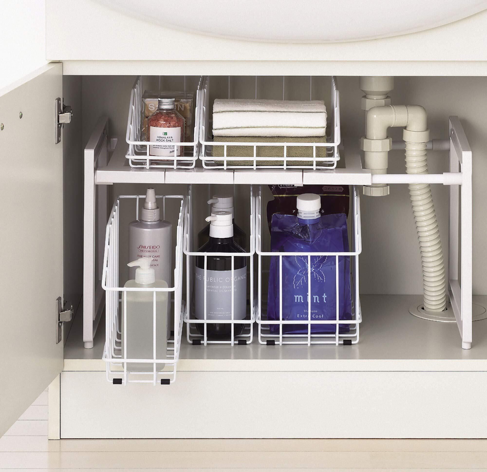パール金属 洗面台下スペースラック ホワイト 360~530 伸縮タイプ アレンジフリー HB-4813