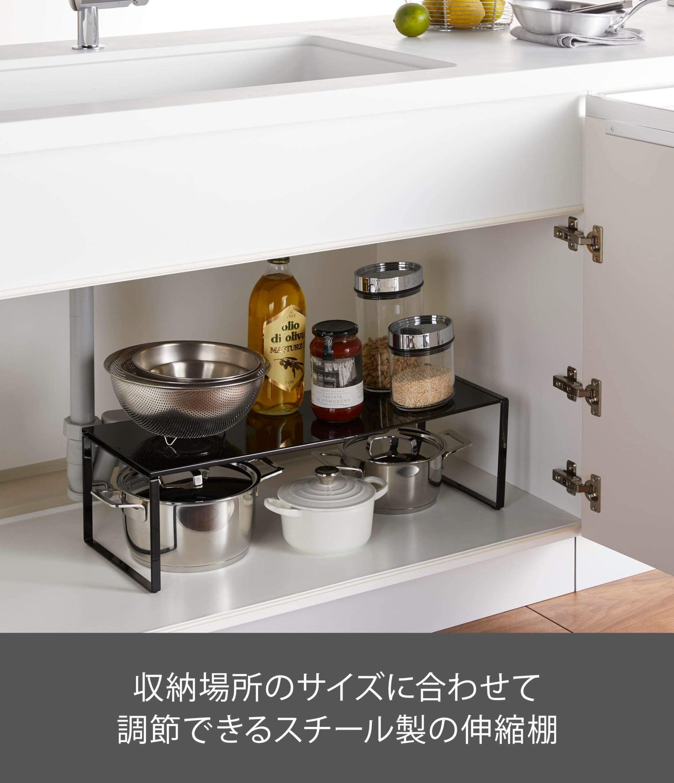山崎実業(Yamazaki) 伸縮収納棚 ブラック 約W36.5-60×D23×H18cm タワー tower シンク下 収納 キッチンラック 3866