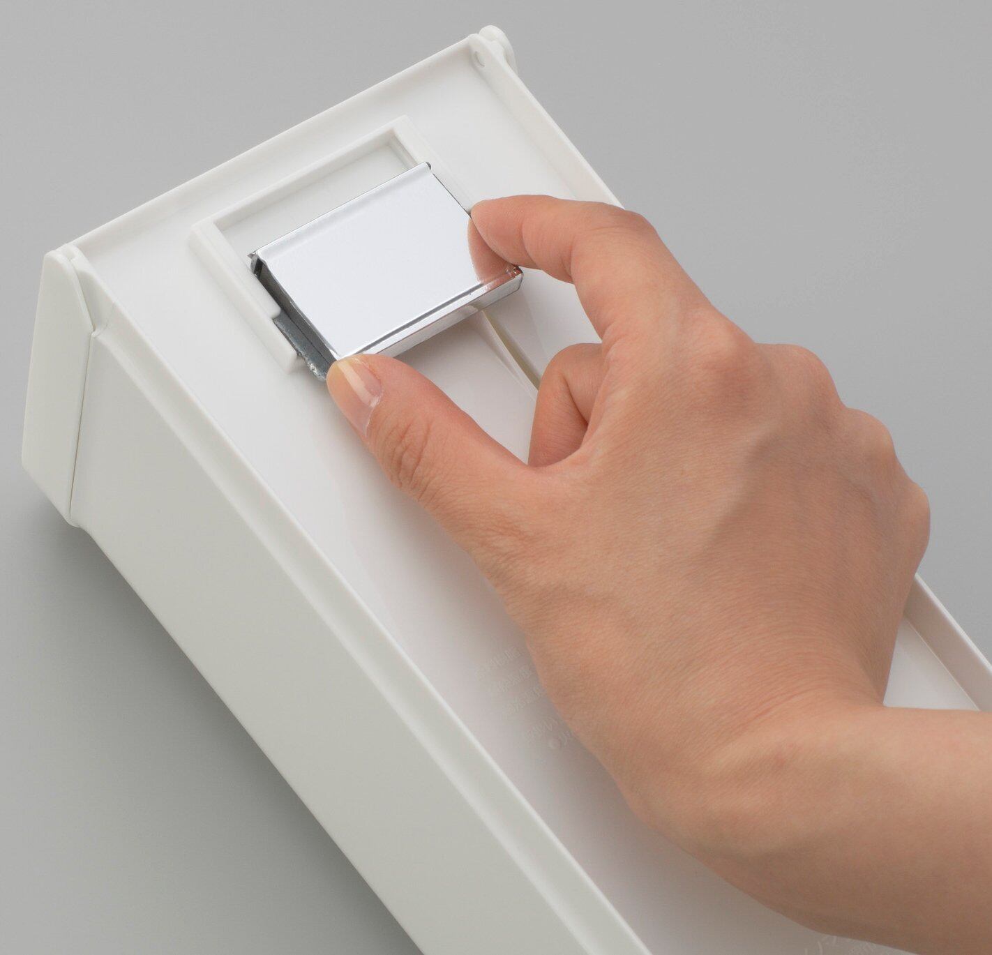 ■たたんだ袋を上からサッと入れるだけで簡単補充。使う時は取り出し口から1枚ずつスムーズに引き出せる設計です。