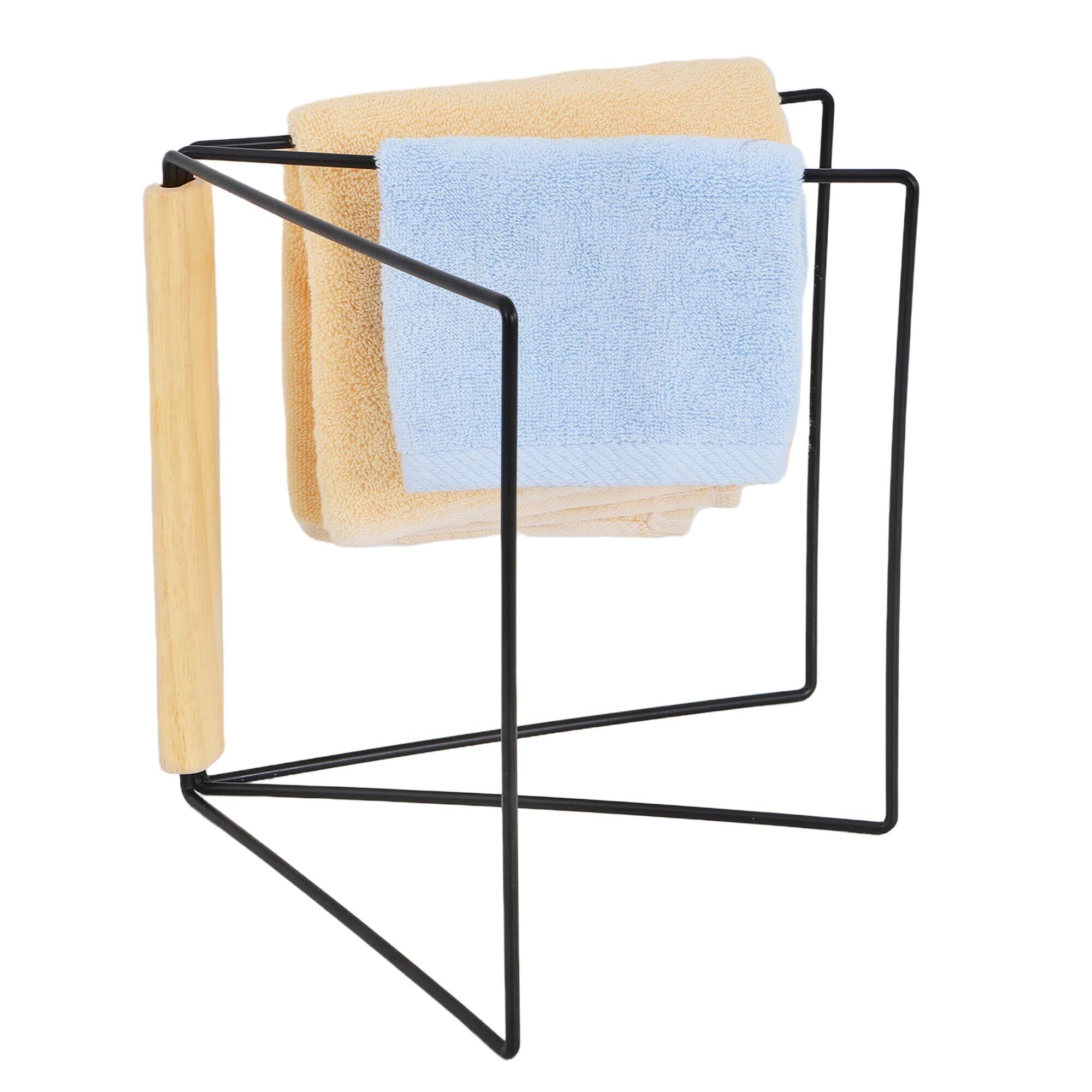 VECELO タオル掛け キッチン 折りたたみ式 だいふきん スタンド 収納便利 スチール製 木製ハンドル付き