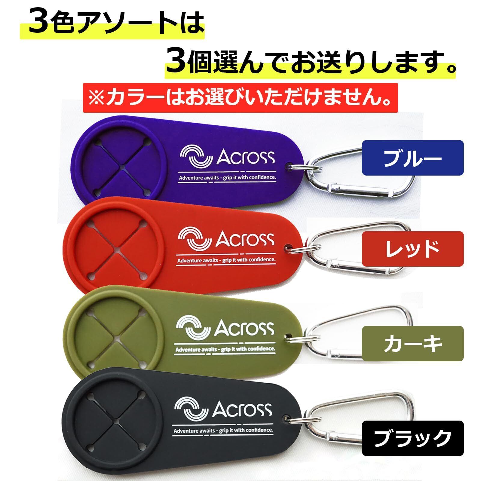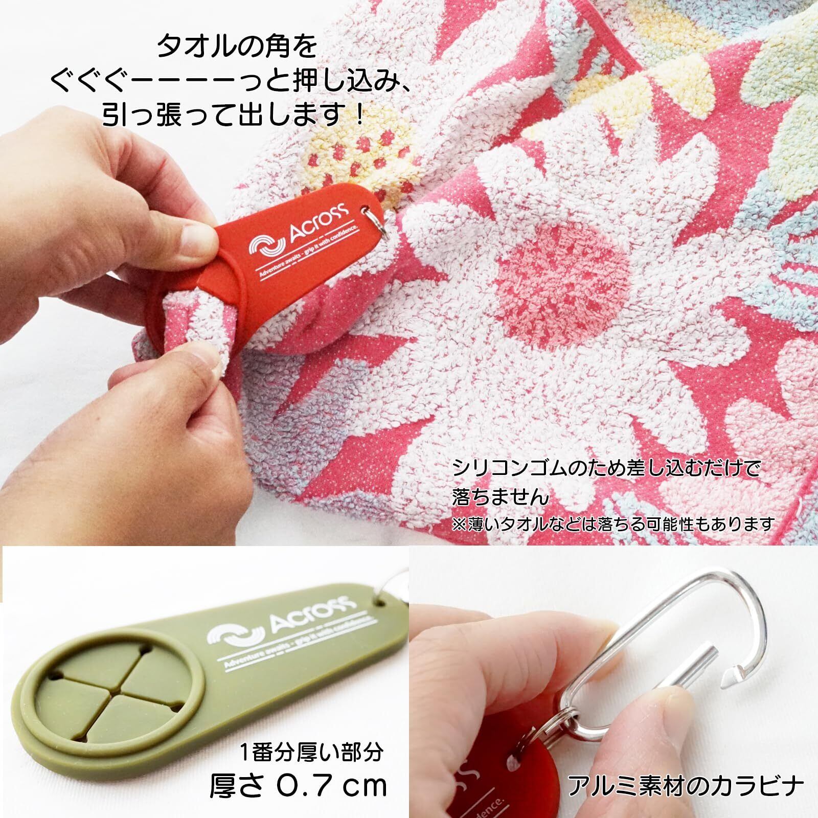 Across タオル ホルダー カラビナ付き タオル掛け レジャー アウトドア 登山 釣り ガーデニング 落下防止 (3色アソート)