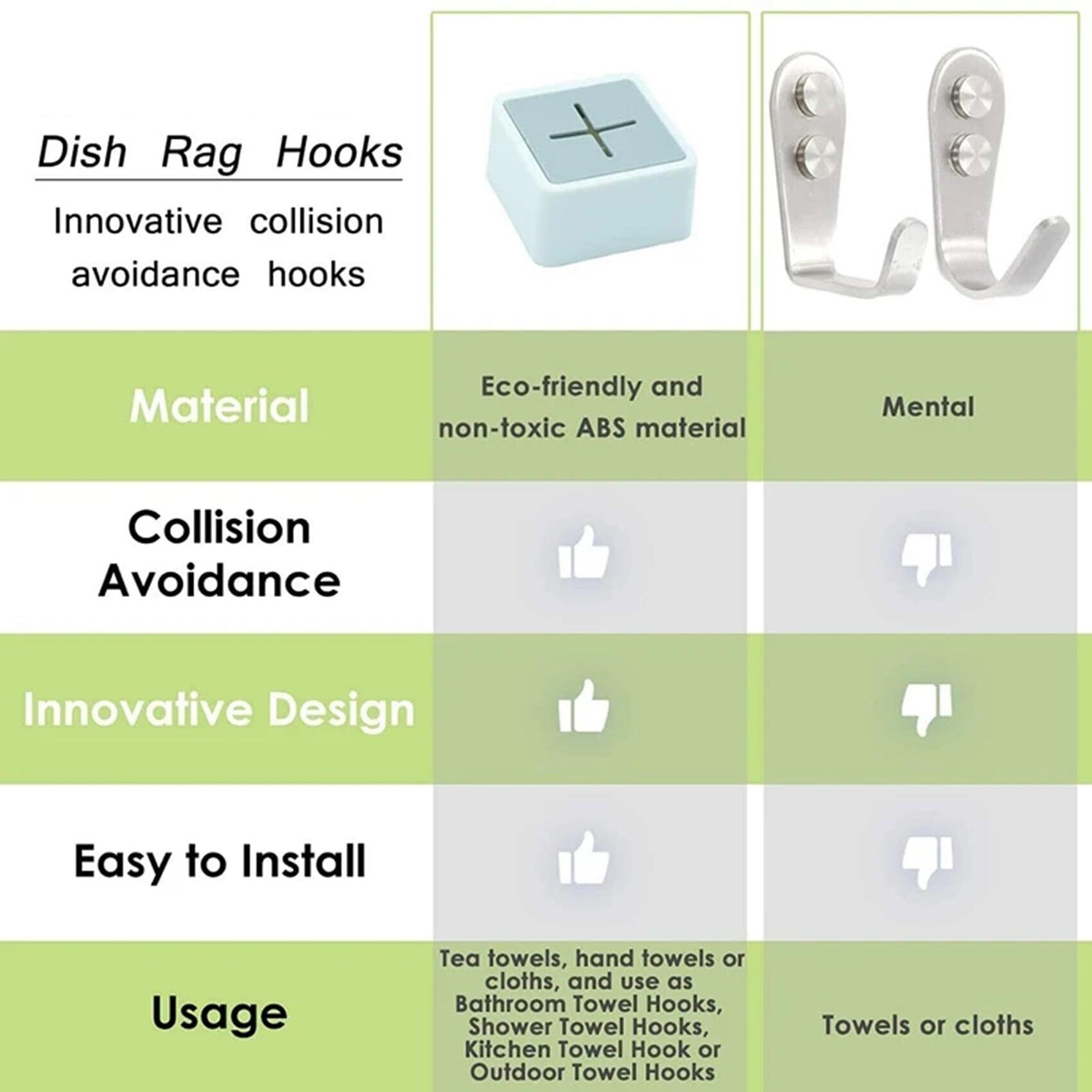 タオルの掛け外しは、押して掛け、引いて外すだけでシンプルかつスピーディーです。柔らかいシリコン素材ですので、手やタオルを傷付けず優しくグリップします。防水、防湿、耐寒、耐熱仕様ですので、キッチン、バスルーム、トイレなど様々な場所でご使用いただけます。