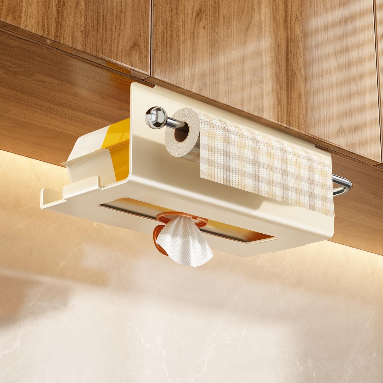 【特価セール】キッチンペーパーホルダー 吊り下げ ラップホルダー 金属 ペーパータオルケース 防水防錆 ロールペーパーホルダー 壁掛け キッチンペーパースタンド ティッシュケース ホワイト VOLPONE