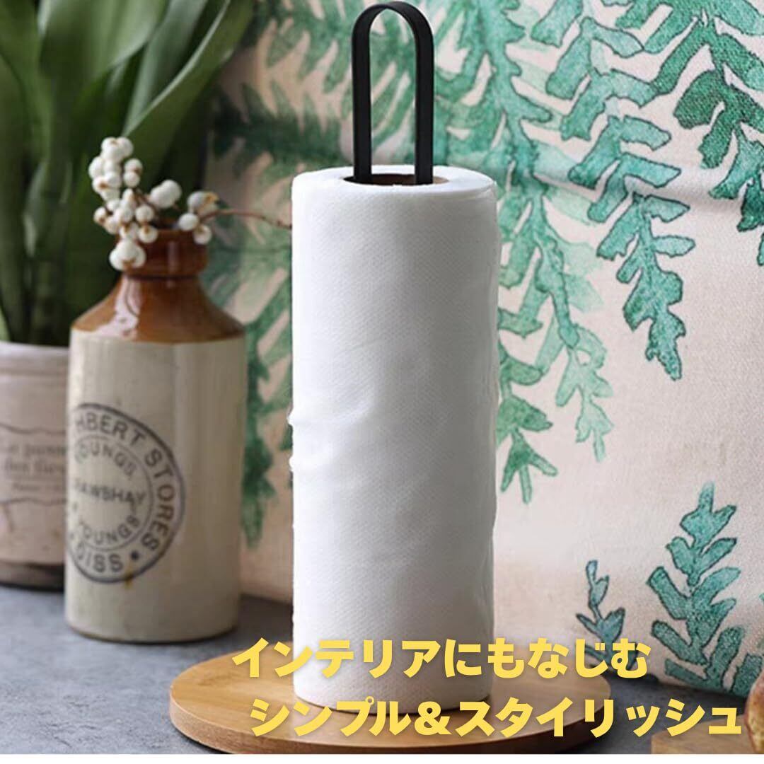 キッチンペーパースタンド キッチンペーパーホルダー 片手で切れる 縦型 おしゃれ (ブラック)