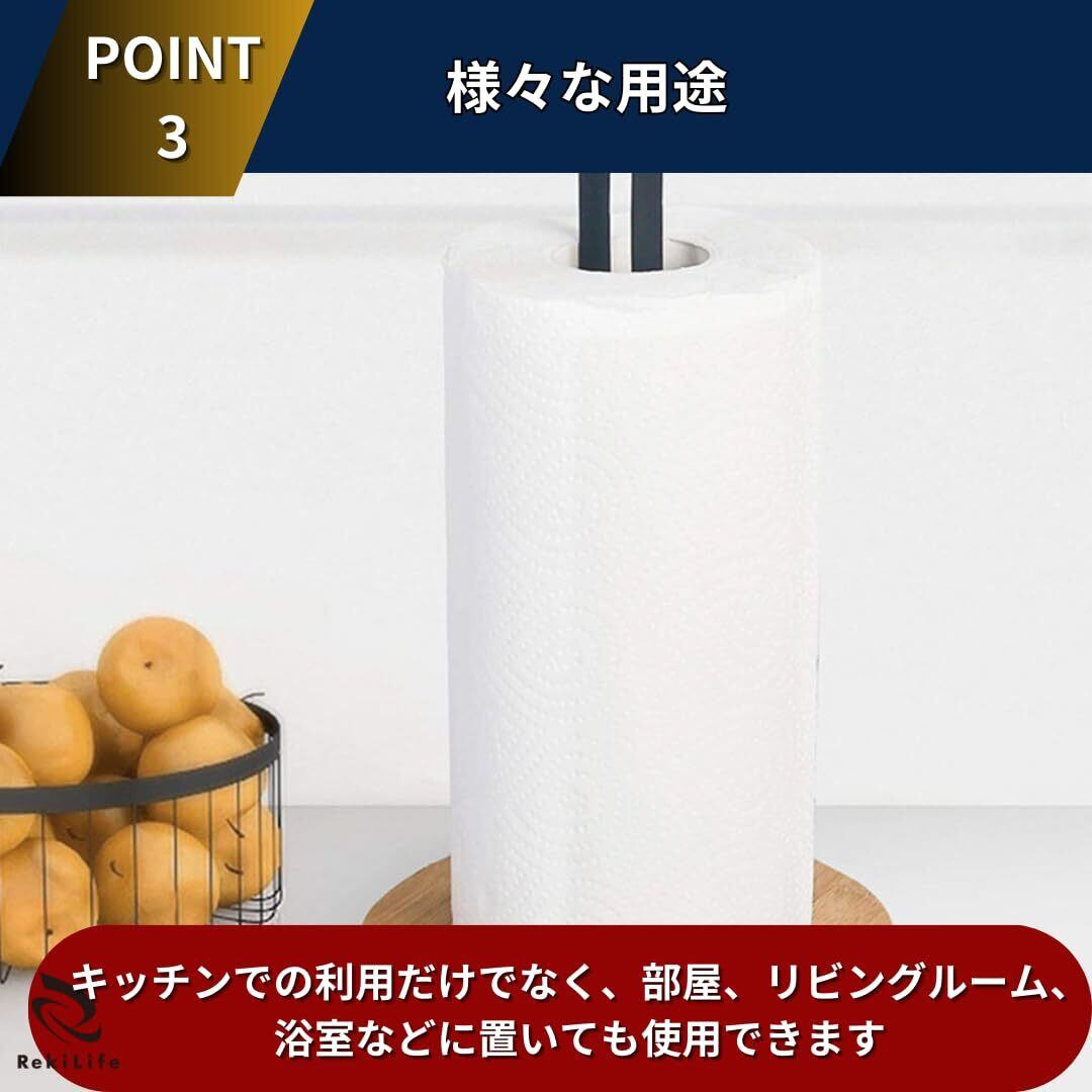 【滑らかな表面と滑り止めベース】キッチンペーパータオルホルダーは、お客様にお届けする前に注意深く研磨されており、使用中に肌を切らないようにしています。同時に、ベースの底部には3つの滑り止めパッドがあり、製品の移動を防止します。