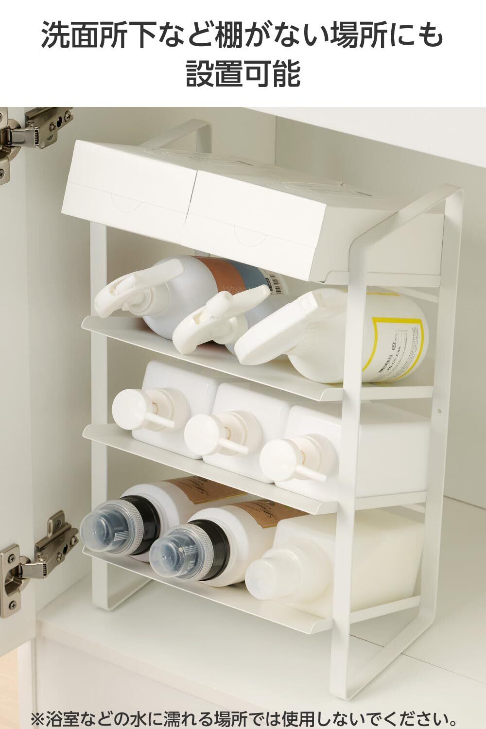 シンク下やキッチン周りをすっきり整頓!調味料ボトルや紙パック、ペットボトルなどをまとめて収納できる、ボトルラックです。どこに何があるか一目で見えやすく、すぐに取り出せる斜め設計です。