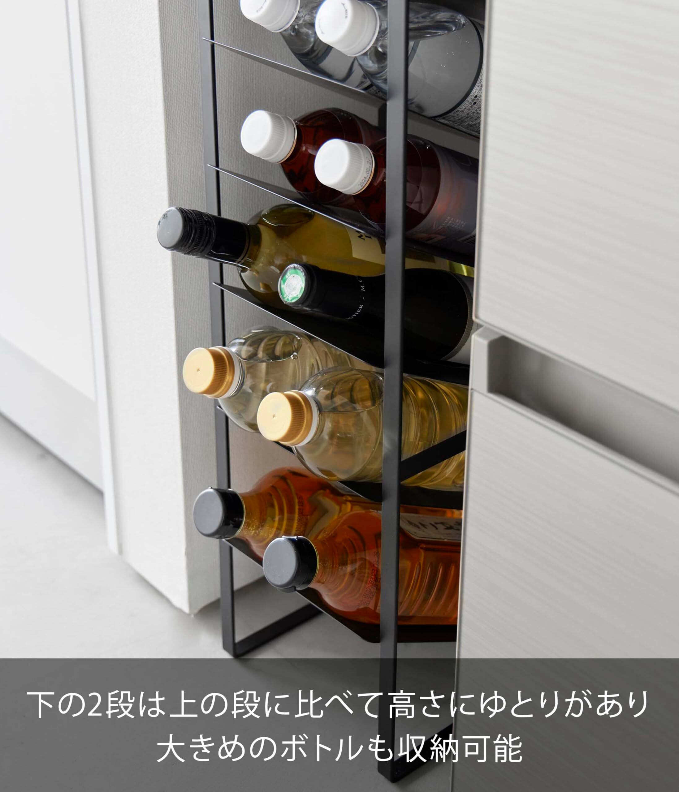 スリムに収納できる天板付きの大容量縦型ボトルストッカー。
