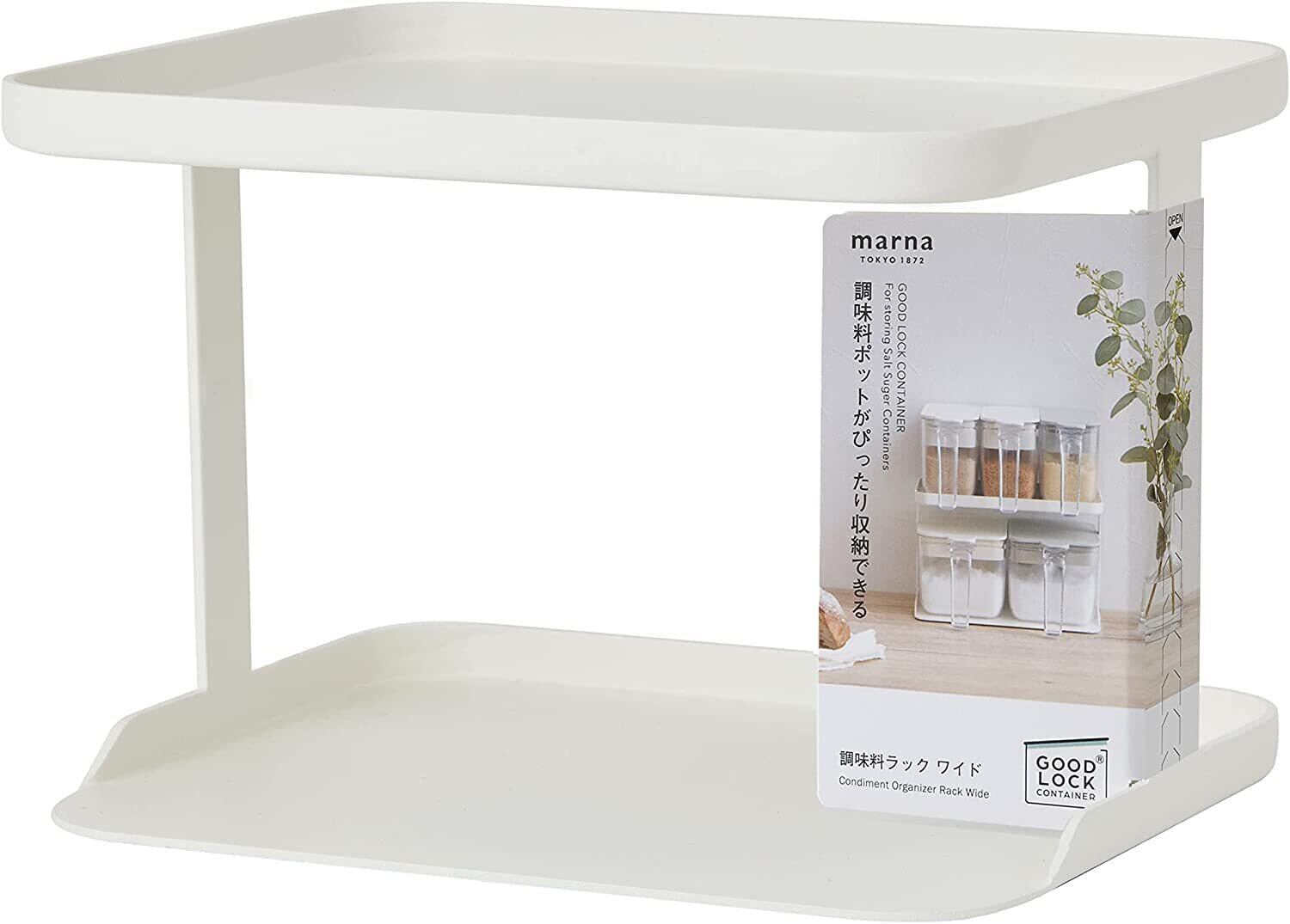 マーナ (marna) 調味料ラック 2段 (ワイド/ホワイト) スパイスラック 調味料棚 (キッチン 調味料 収納) 調味料入れ 調味料置き (グッドロックコンテナ) K774W