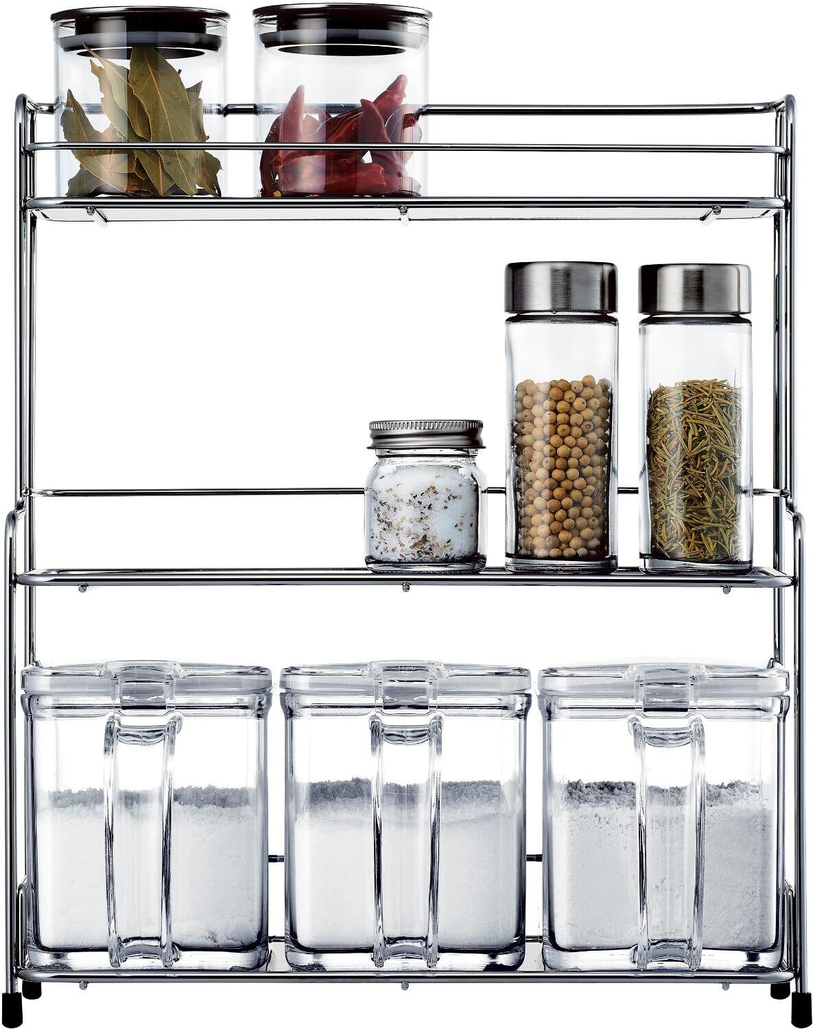●醤油やコショーなどが入った、調味料入れ、スパイスボトルなどは2列で並べることができます。