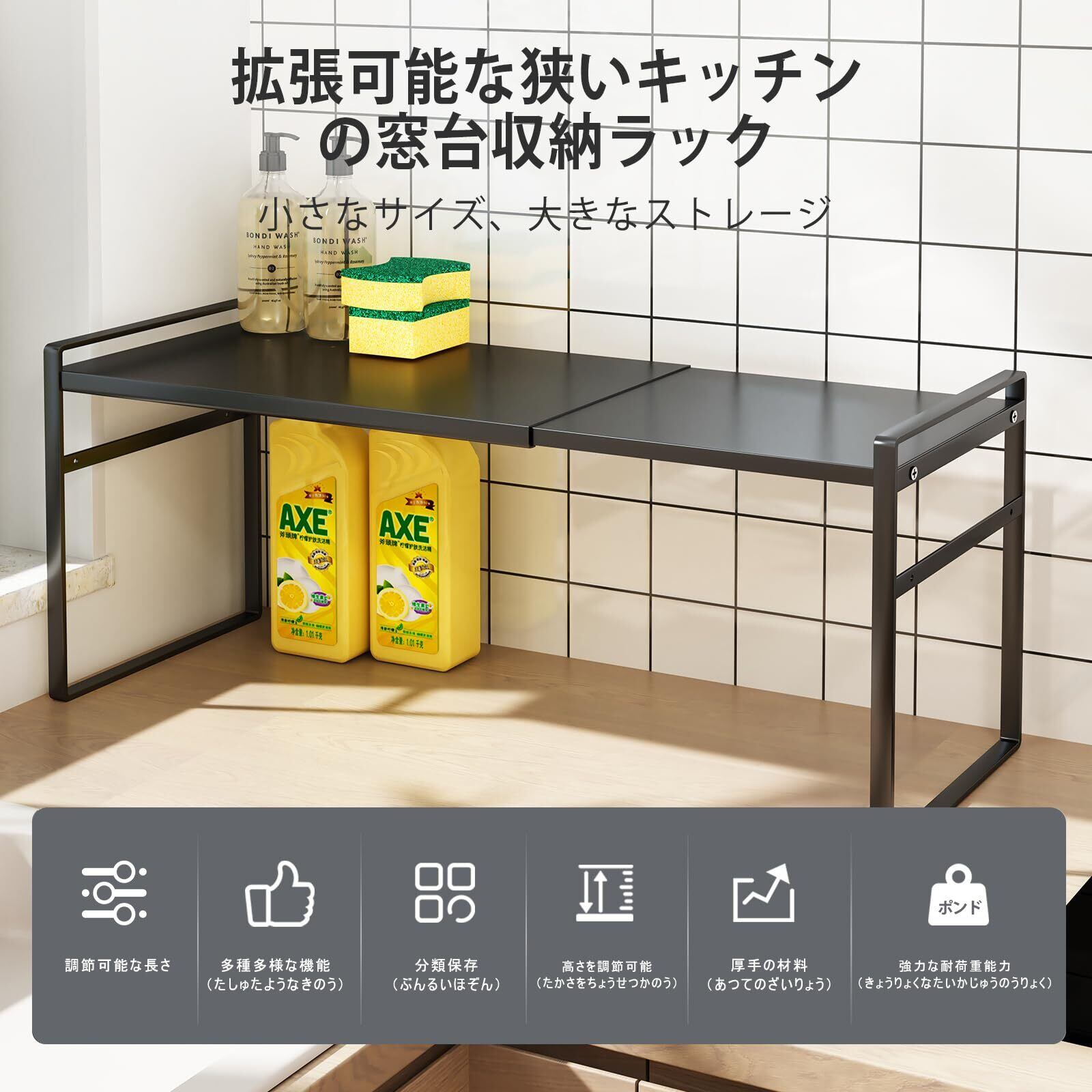 【数量限定】1個 キッチンラックスリム - 調味料ラック スリム 隙間ラック スパイス&調理器具用拡張可能なメタル収納ラック、塗装仕上げ (黒, 通常サイズ)