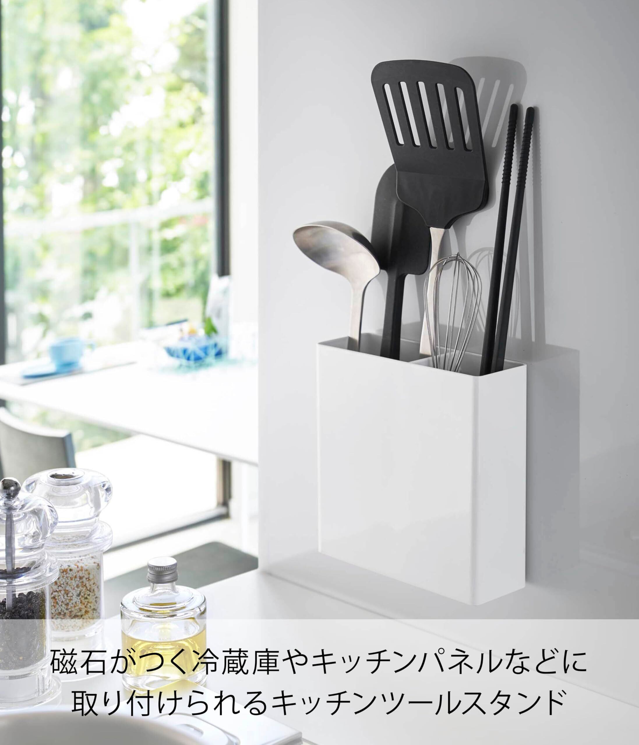 山崎実業(Yamazaki) マグネット キッチンツールスタンド ホワイト 約W13.5XD5XH14cm タワー 浮かせる収納 簡単取り付け 5146