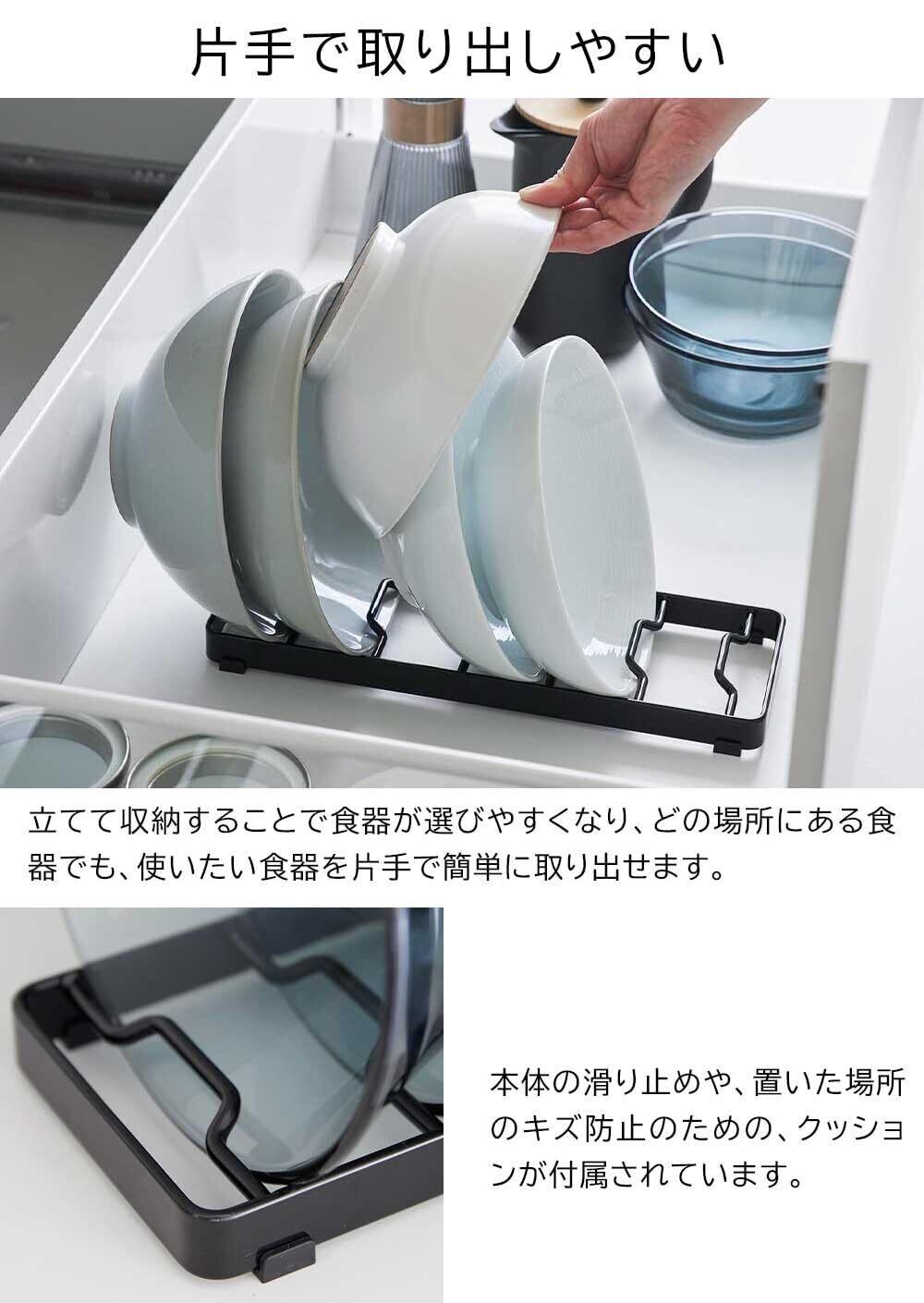 どんぶり鉢やサラダボウルを、取り出しやすく立てて収納できるお椀スタンドLサイズ。