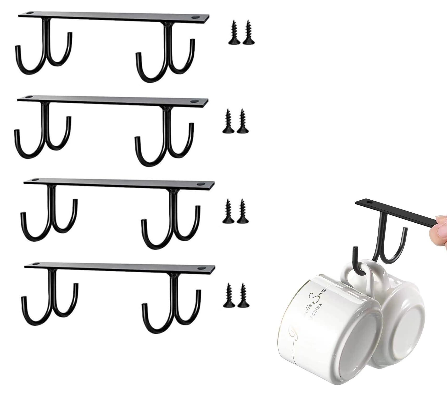 siawadeky カップハンガー キッチンフック 吊り下げ 4個セット 戸棚下収納ラック マグカップホルダー 水切りフック 安定性 ネジ付き 小物収納 キッチン 家庭