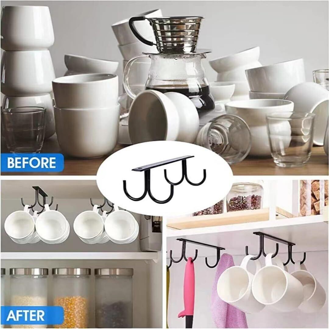 【在庫処分】siawadeky カップハンガー キッチンフック 吊り下げ 4個セット 戸棚下収納ラック マグカップホルダー 水切りフック 安定性 ネジ付き 小物収納 キッチン 家庭