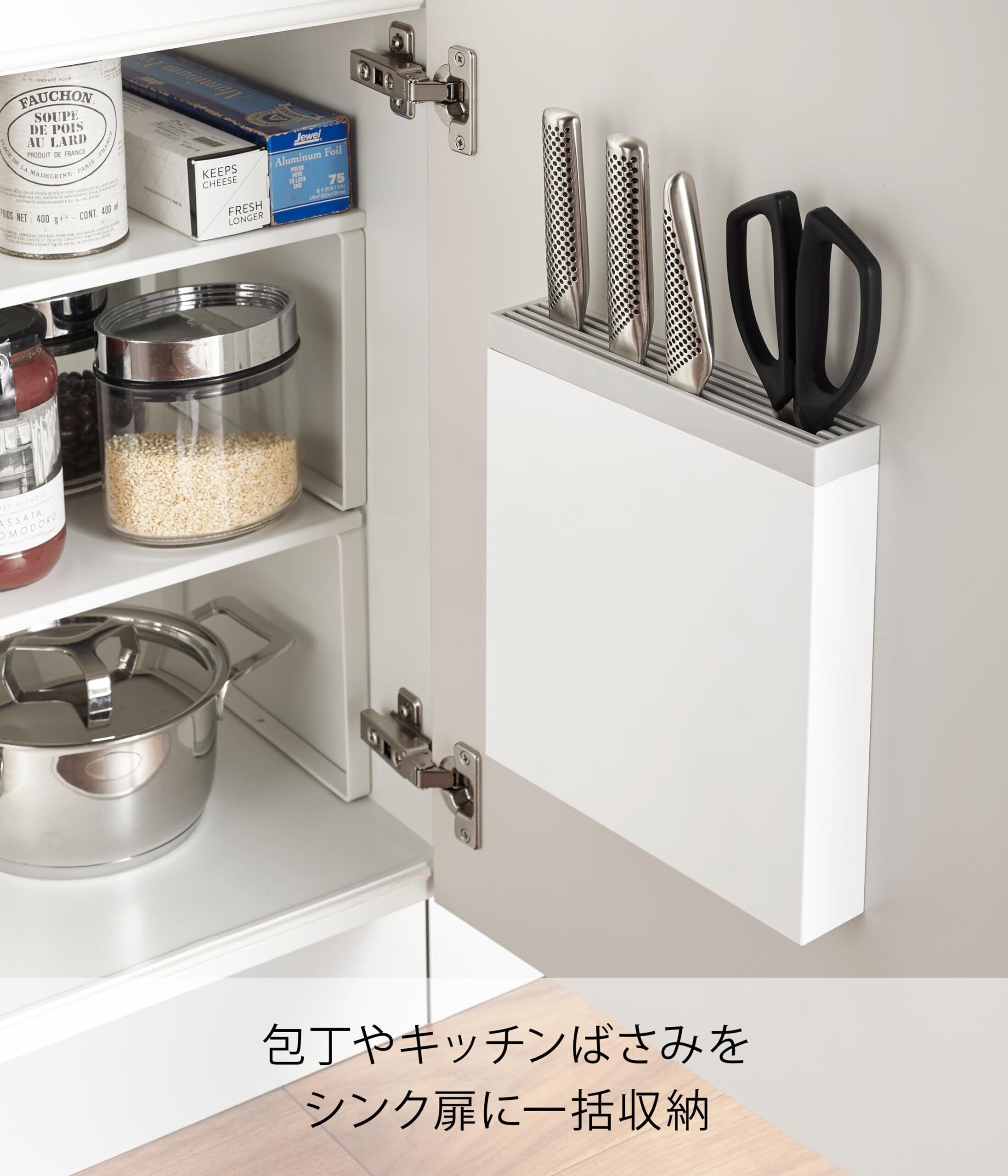 【在庫処分】山崎実業 シンク下 包丁差し 洗いやすい着脱式カバー 包丁& キッチンばさみ差し プレート ホワイト 3843