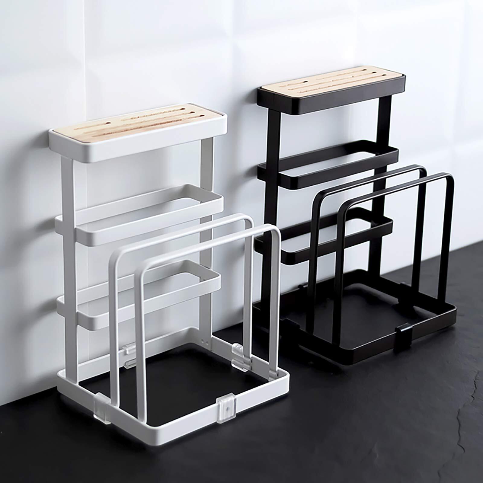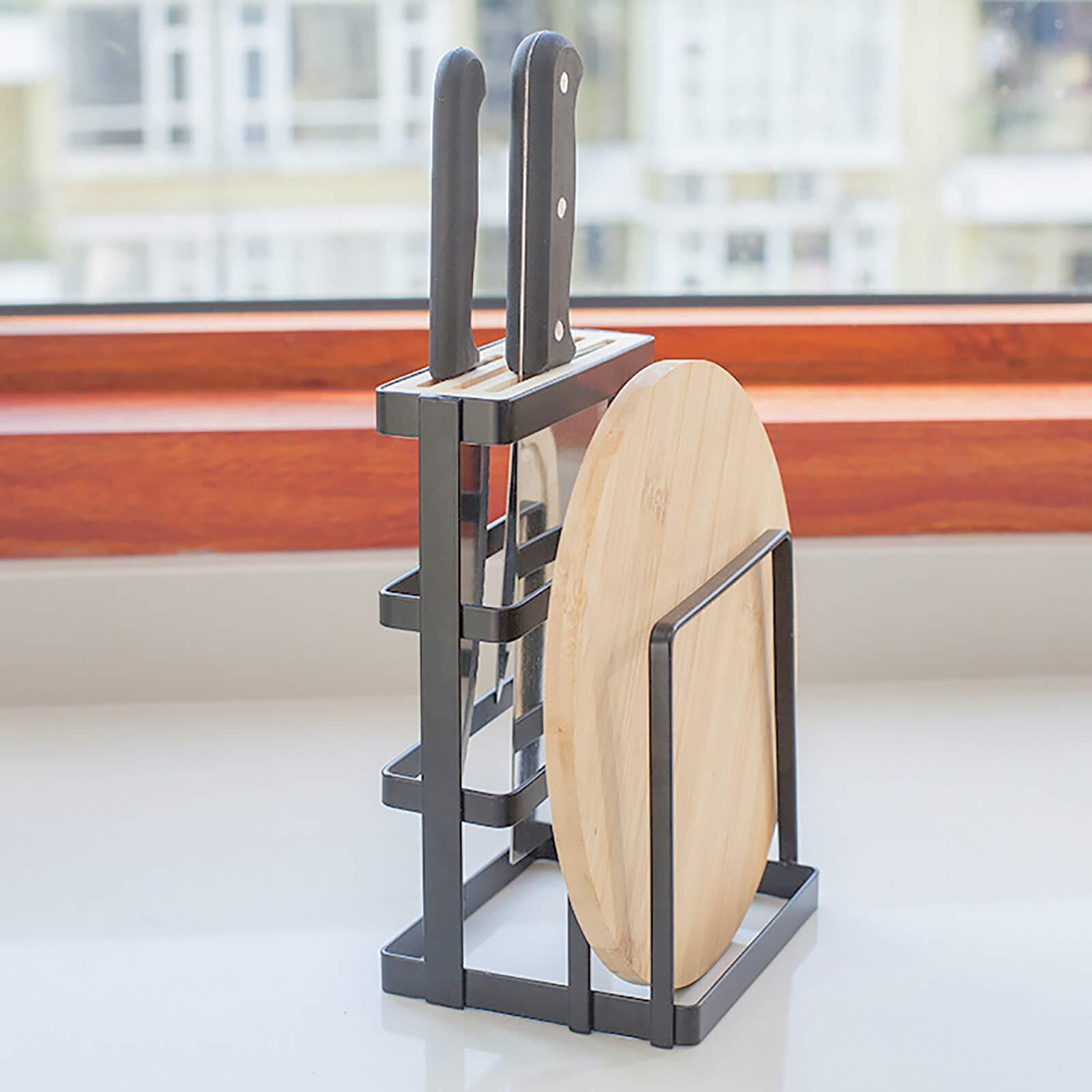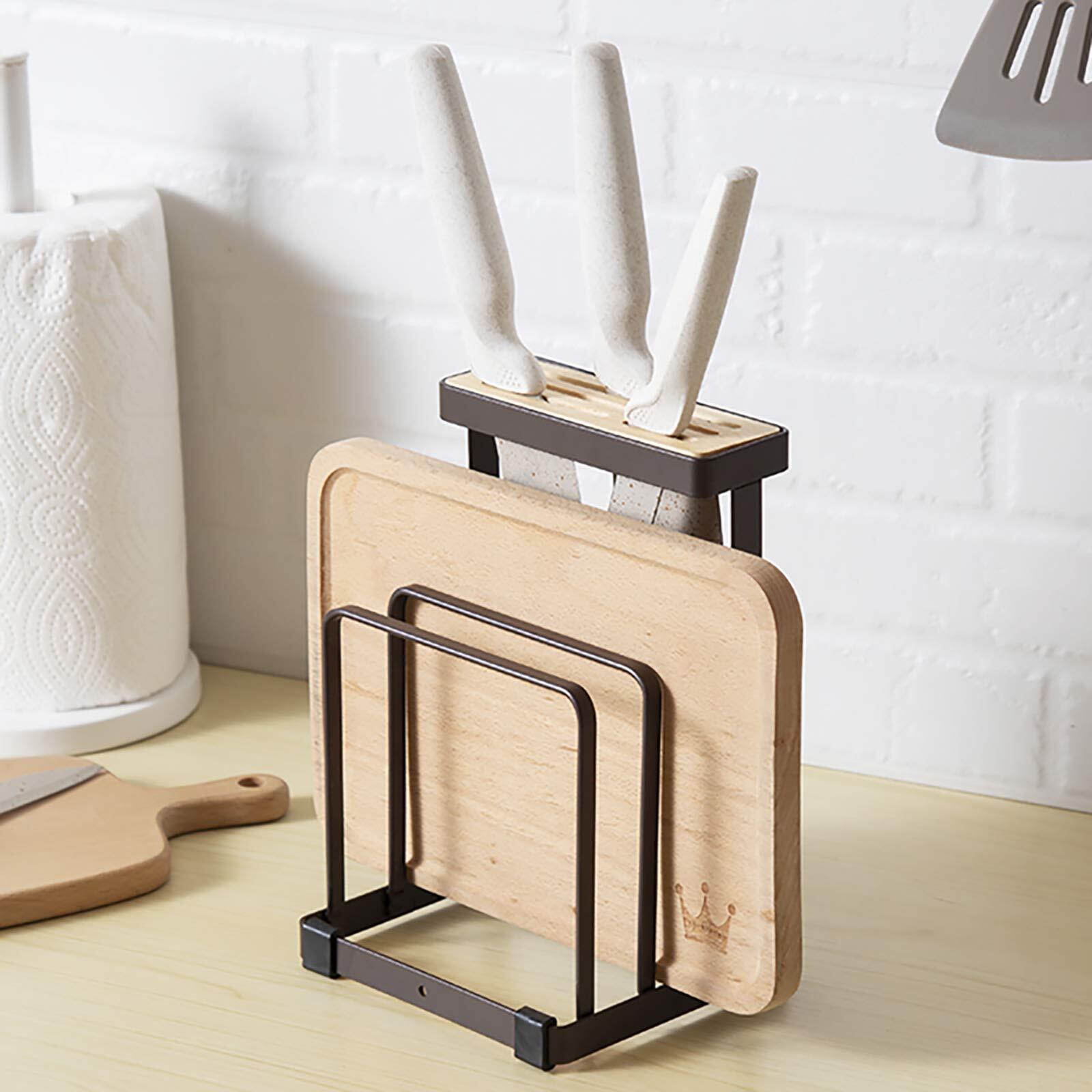 VANRA™ まな板スタンド 包丁スタンド 鉄製 まな板立て 水切り包丁 まな板 鍋ふた 木製 包丁立て (ブラウン)