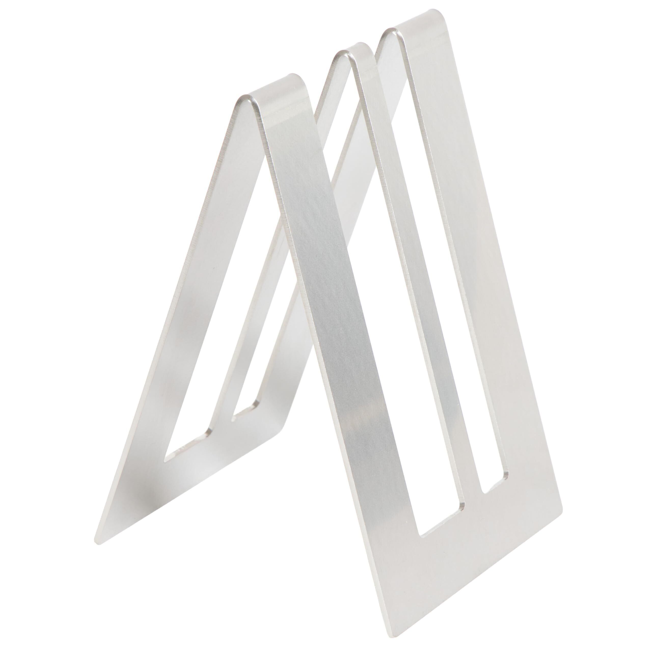 【機能性】①幅10cmのスリムなまな板たてなので場所を取りません。②1.5cmと2.5cmまでのまな板を2枚スタンドできます。③三角構造で支点が高く、重みもあるので倒れにくいです。④ステンレスなので錆びにくく、カビにくい為、衛生的です。