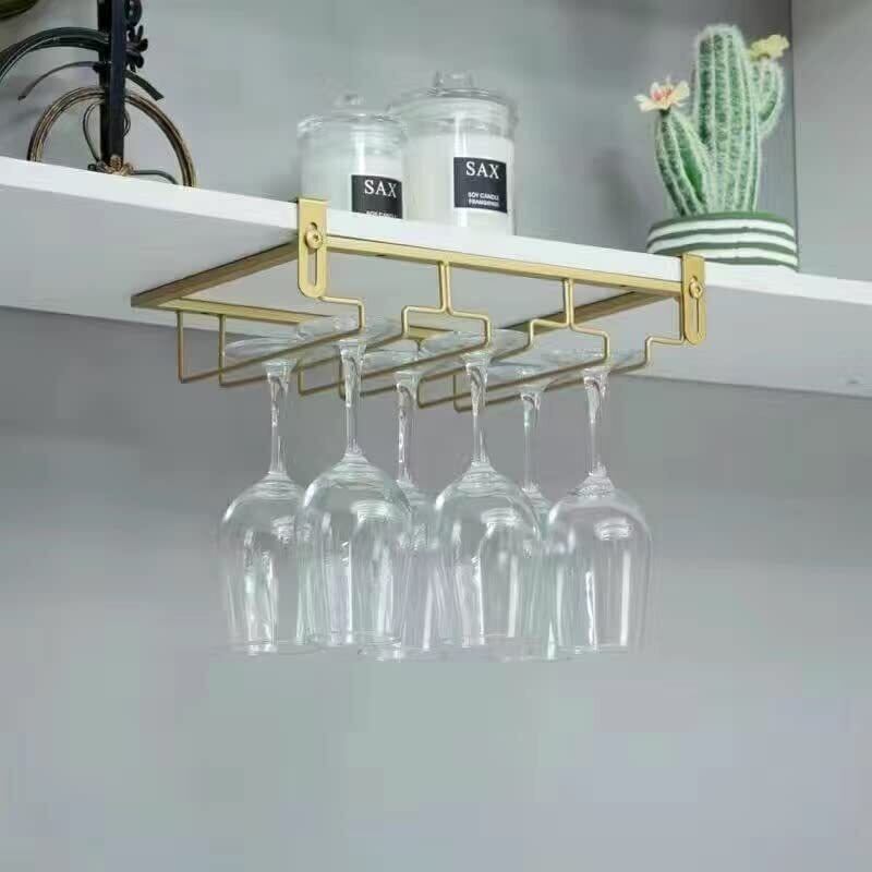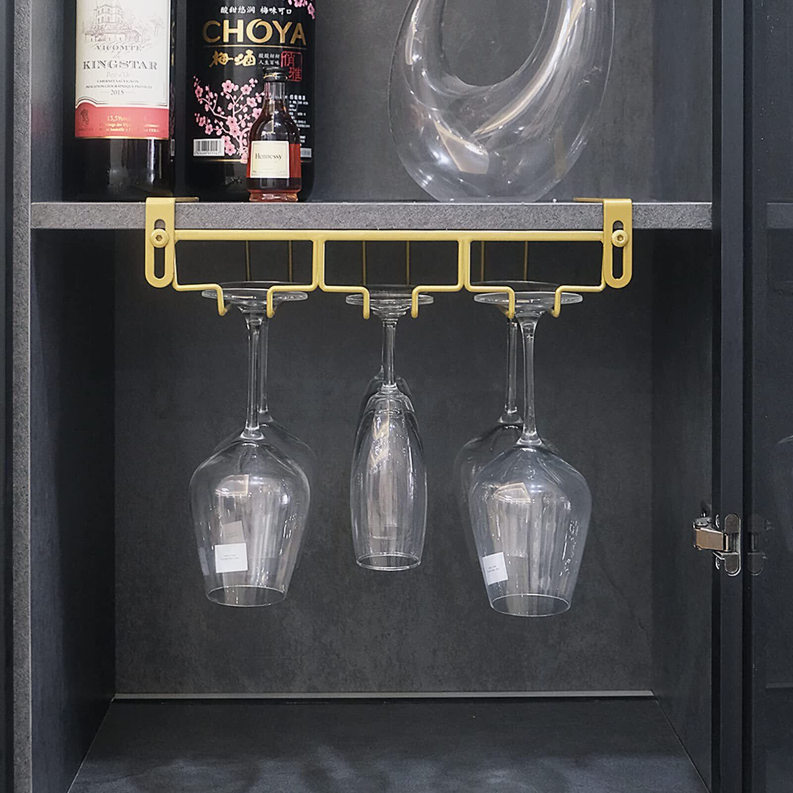 【特価セール】ワイングラスホルダー 吊り下げ 穴あけ 不要 ネジ止め不要厚さ調節可能 キッチン 3列の金色です