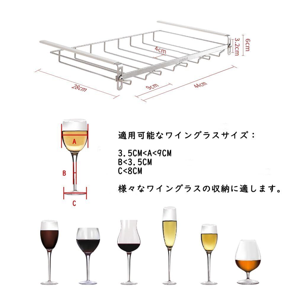 【新春セール】ワイングラスホルダー 棚厚さ調節可能 ワイングラスハンガー 吊り下げ 穴あけ不要 (4レーン 12個収納可能)